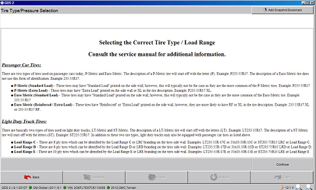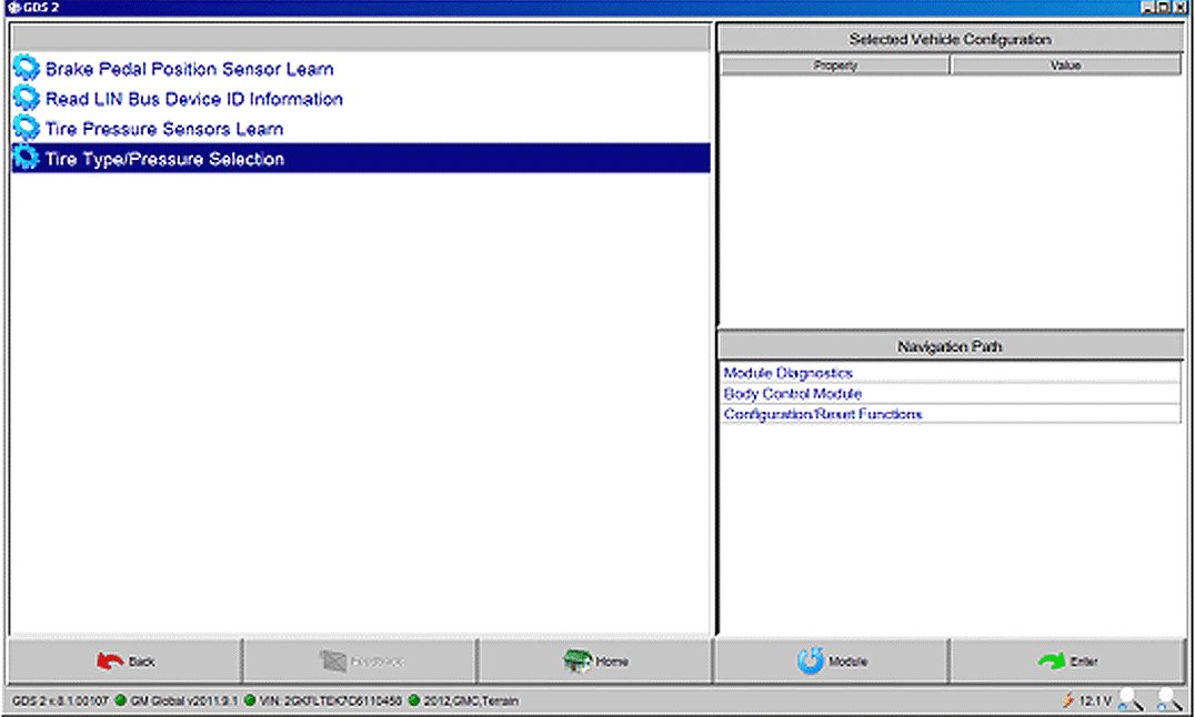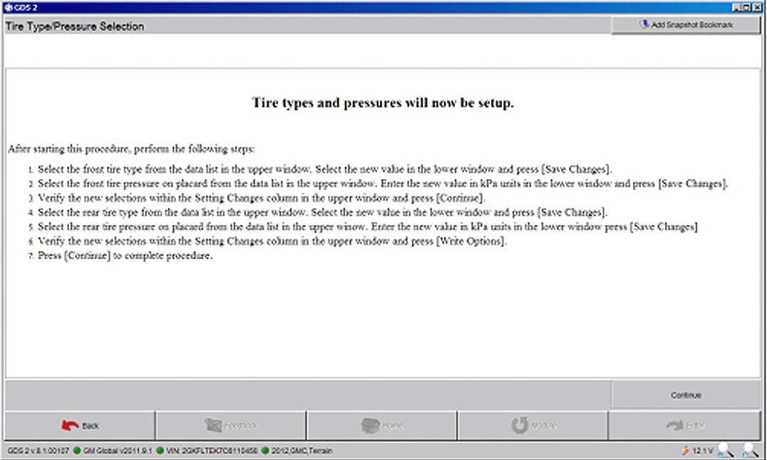 Home >> GMC >> 2012 >> Terrain FWD L4-2.4L >> Repair and Diagnosis >> Powertrain Management >> Computers and Control Systems >> Body Control Module >> Technical Service Bulletins >> Recalls >> Safety >> Recall - Tire Pressure Monitor System Update >> Service Procedure