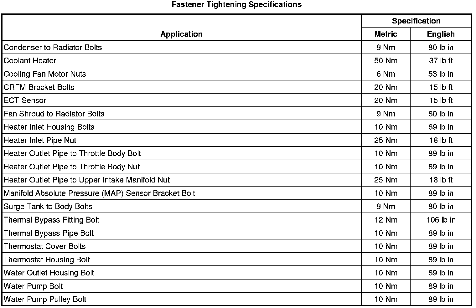 Fastener Tightening Specifications