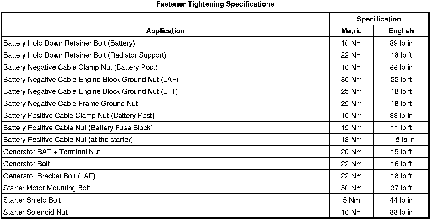 Starting and Charging: Specifications