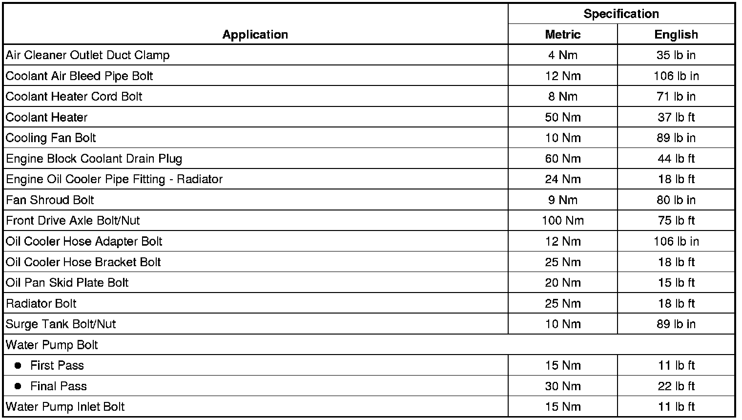 Fastener Tightening Specifications