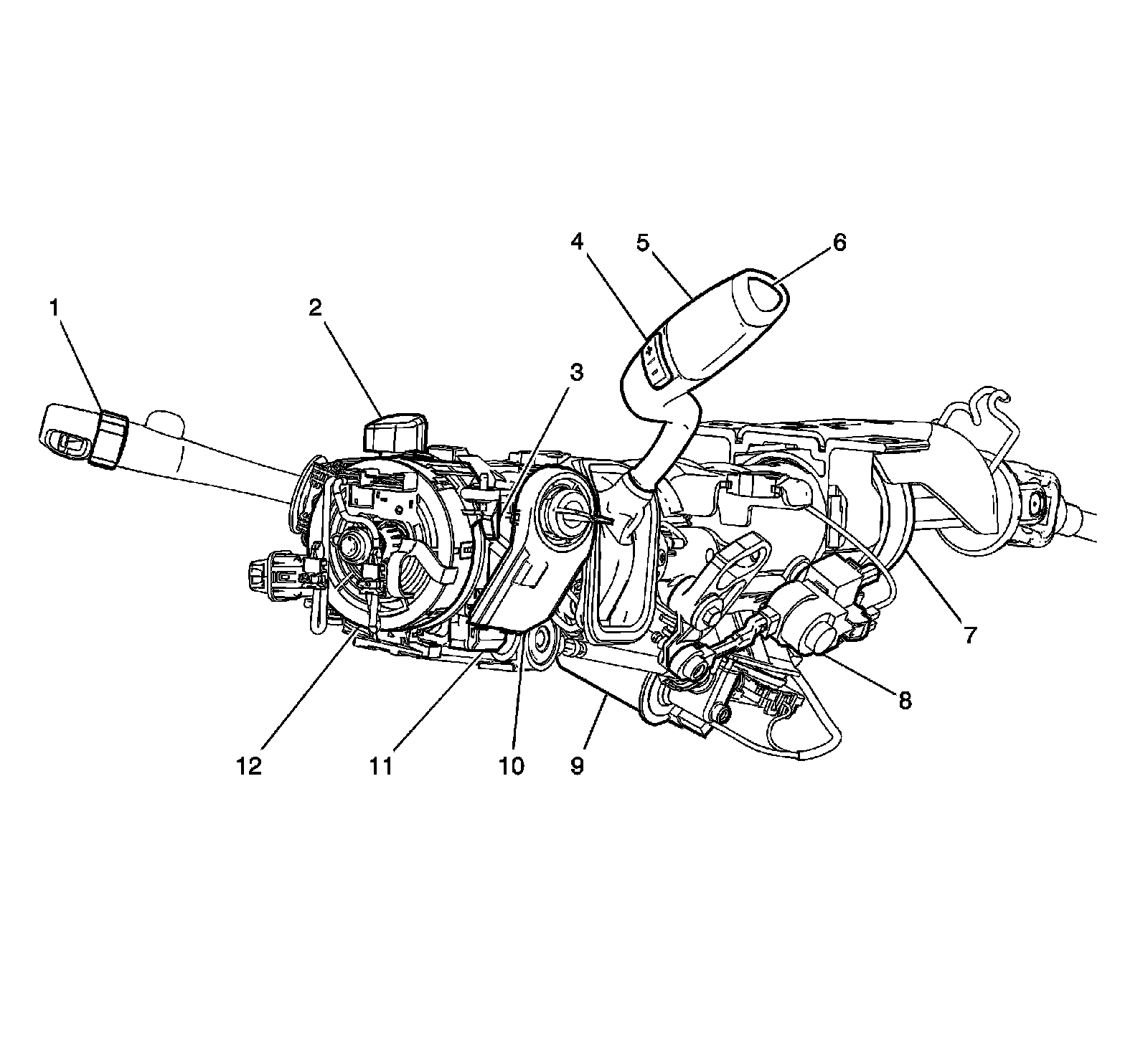 Home >> GMC >> 2012 >> Yukon 4WD V8-5.3L >> Repair and Diagnosis >> Locations >> Component Locations >> Instrument Panel/Center Console Component Views >> Steering Column Components