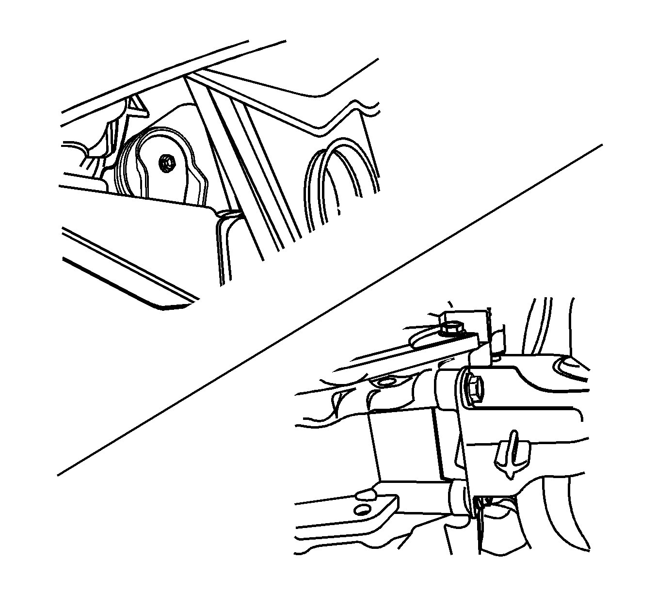 12.Remove the transmission front mount to front suspension crossmember bolt and disconnect the mount from the frame.