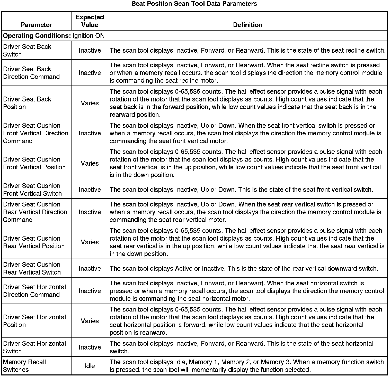 Driver Seat Adjuster Memory Module Scan Tool Information