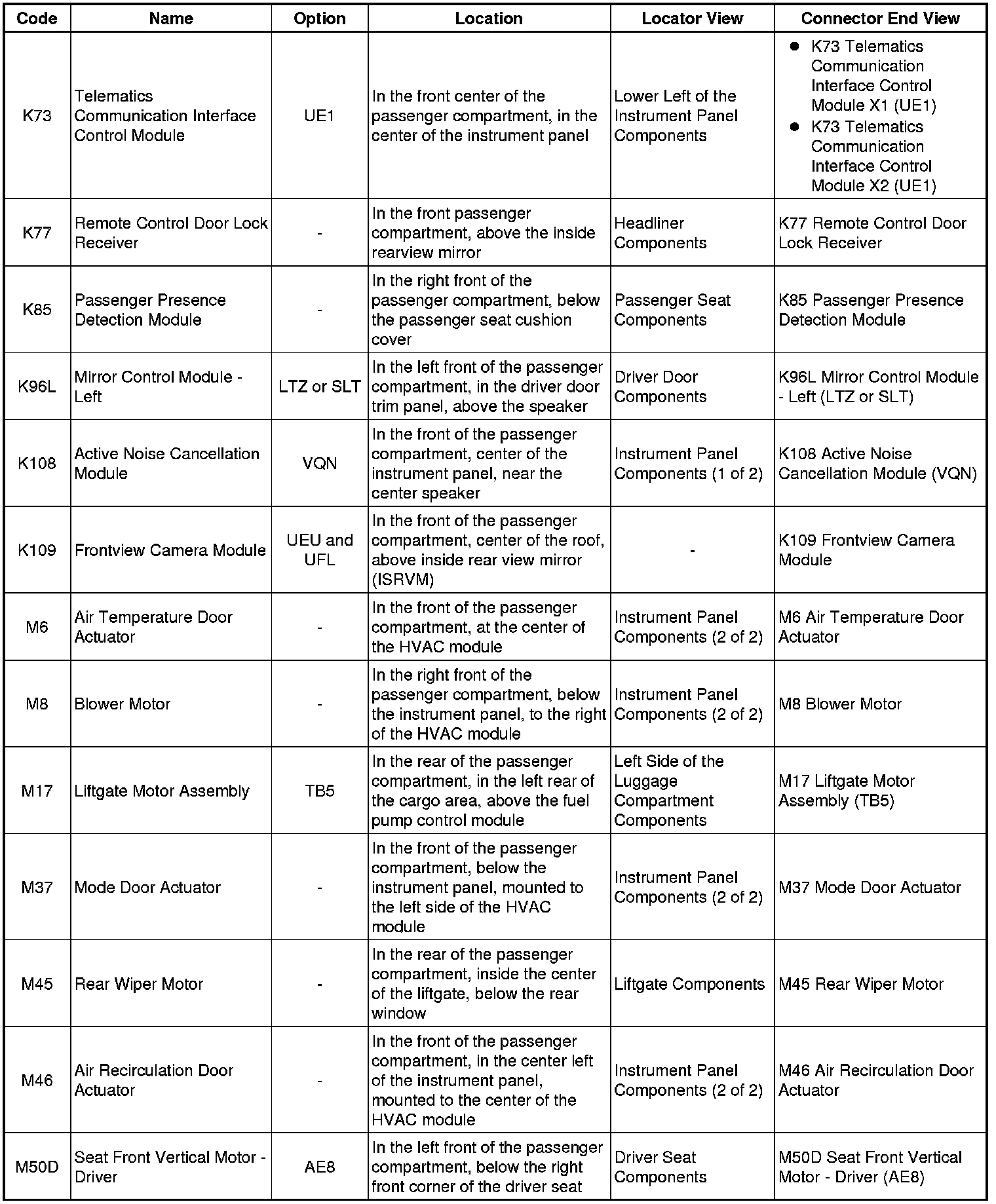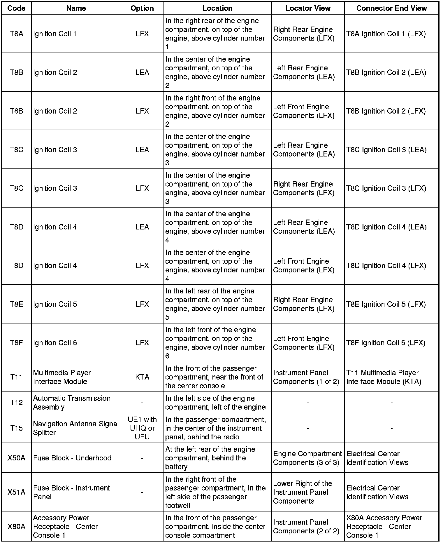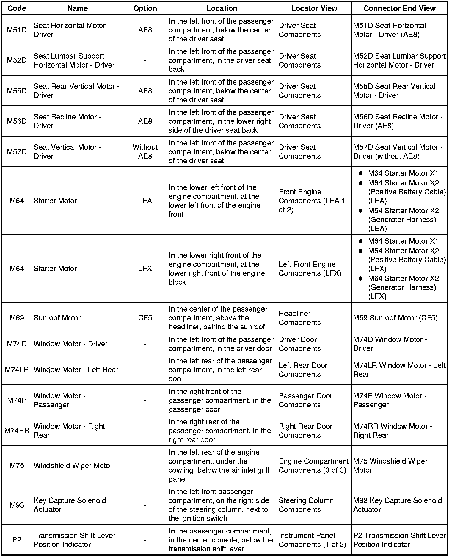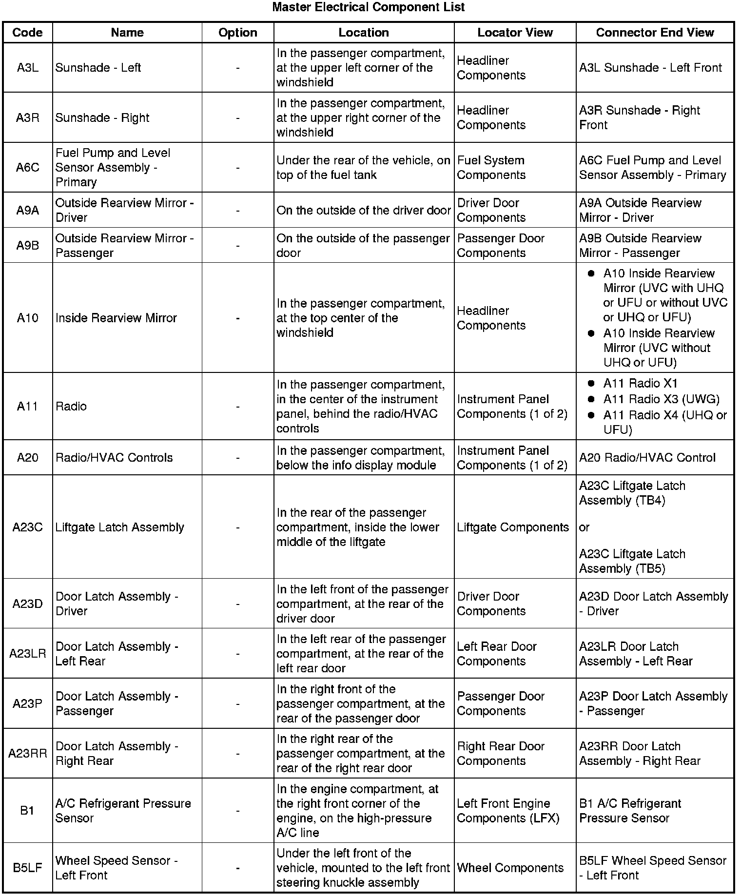 Master Electrical Component List