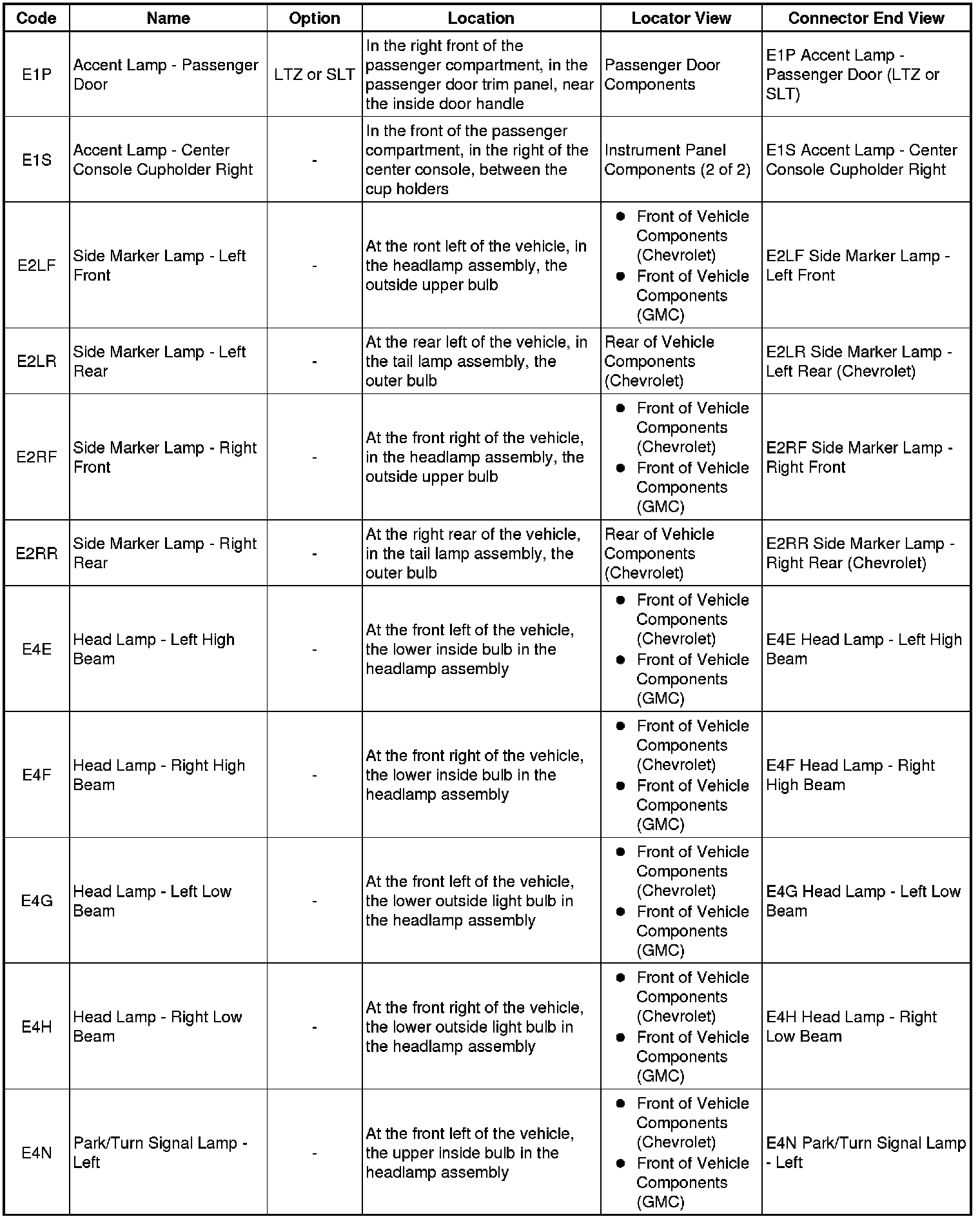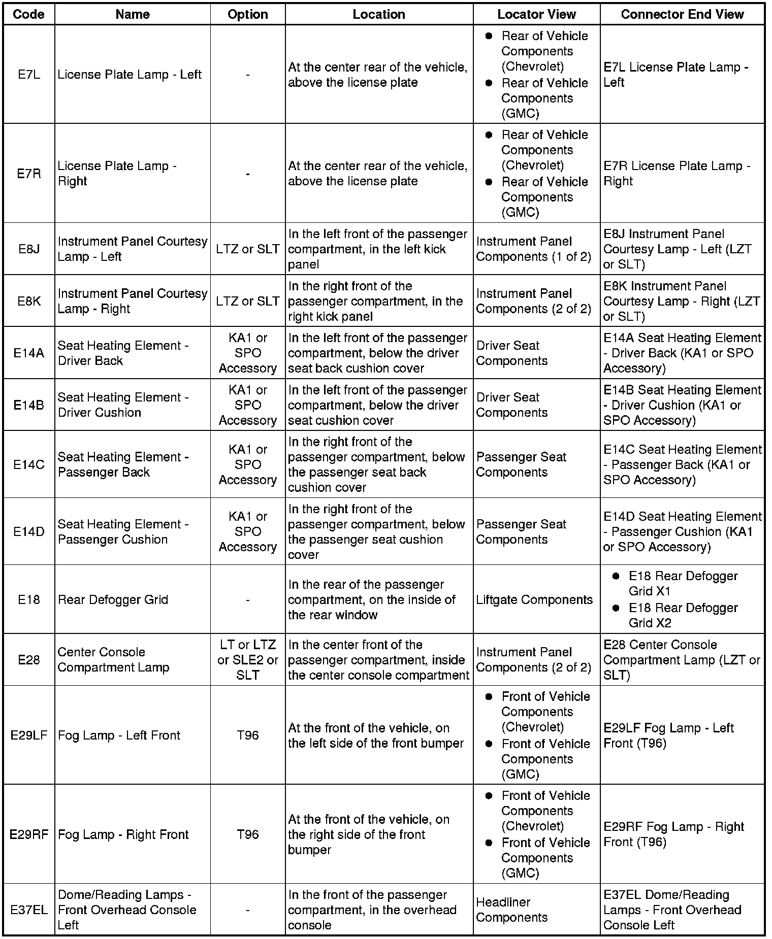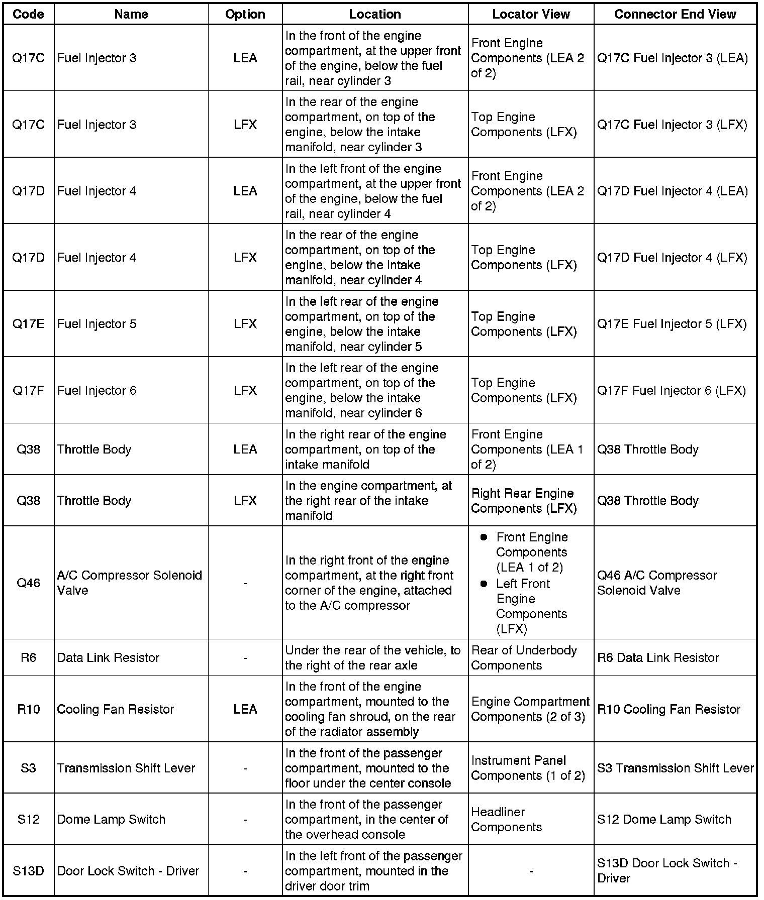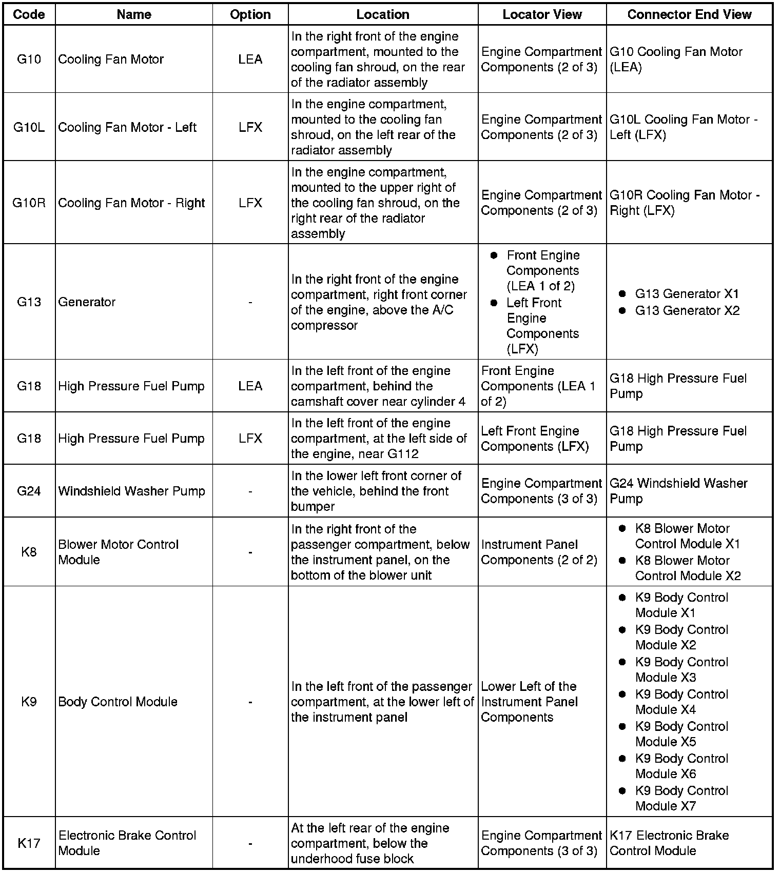 Master Electrical Component List