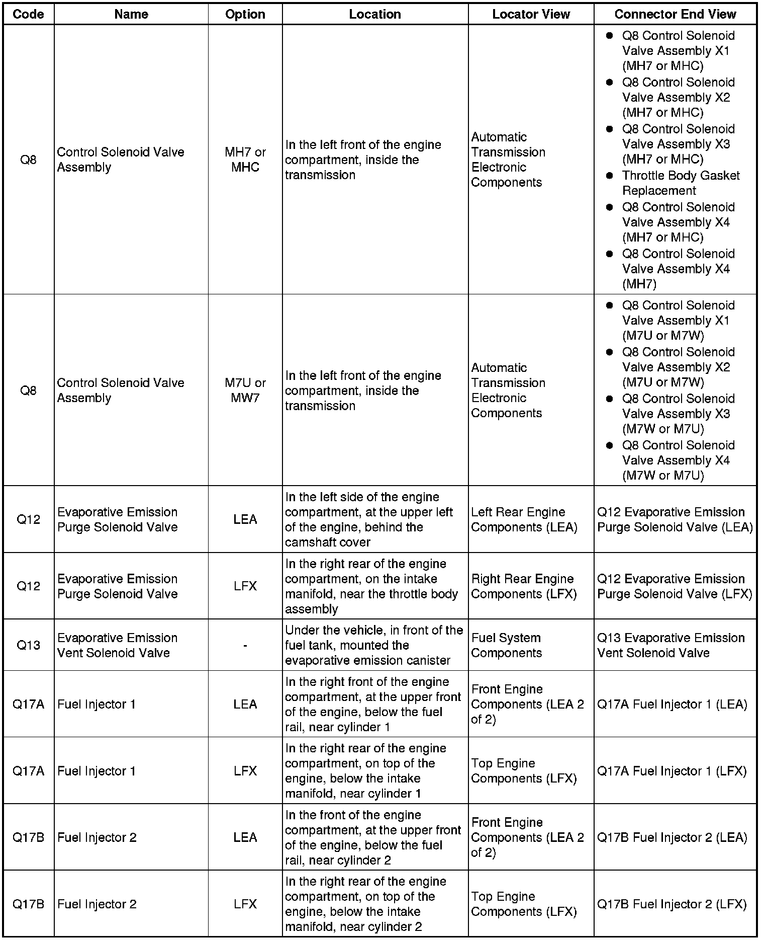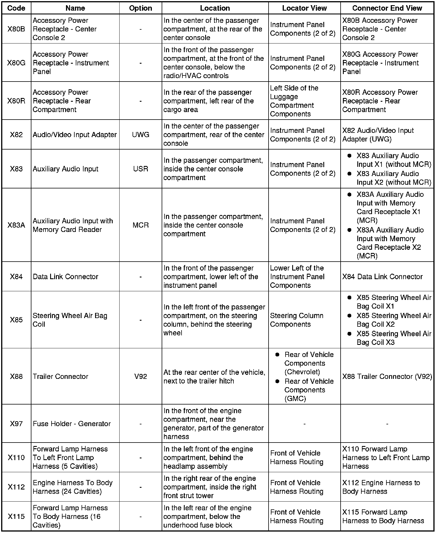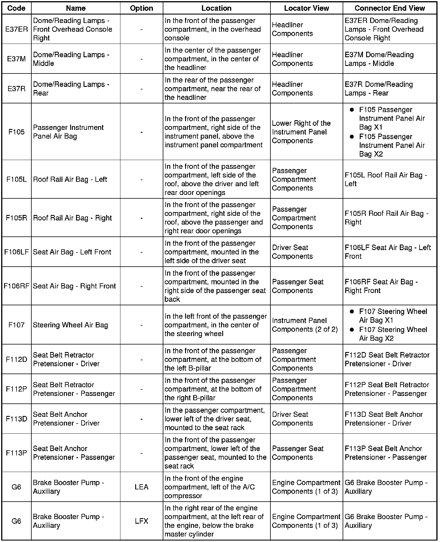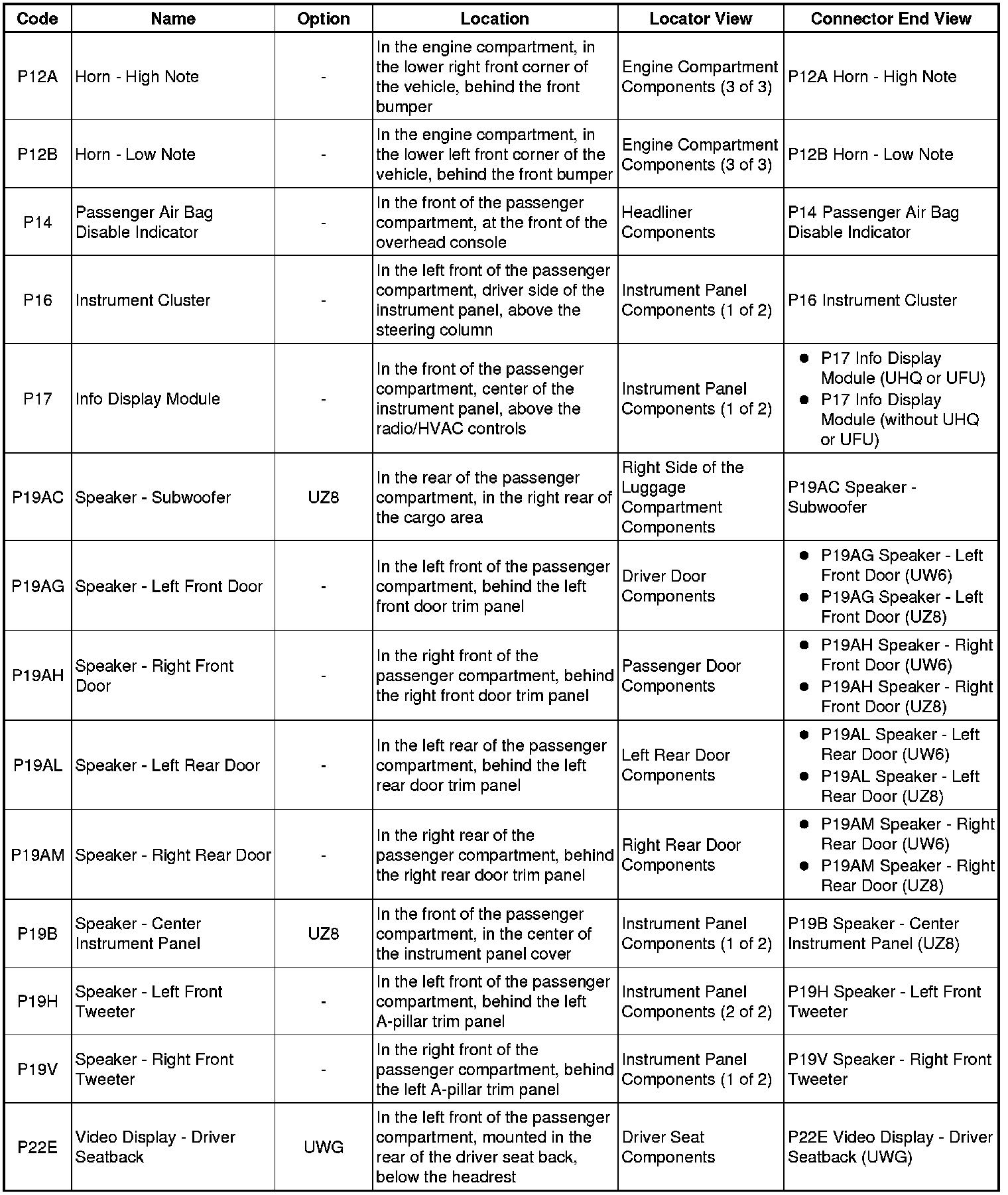Master Electrical Component List
