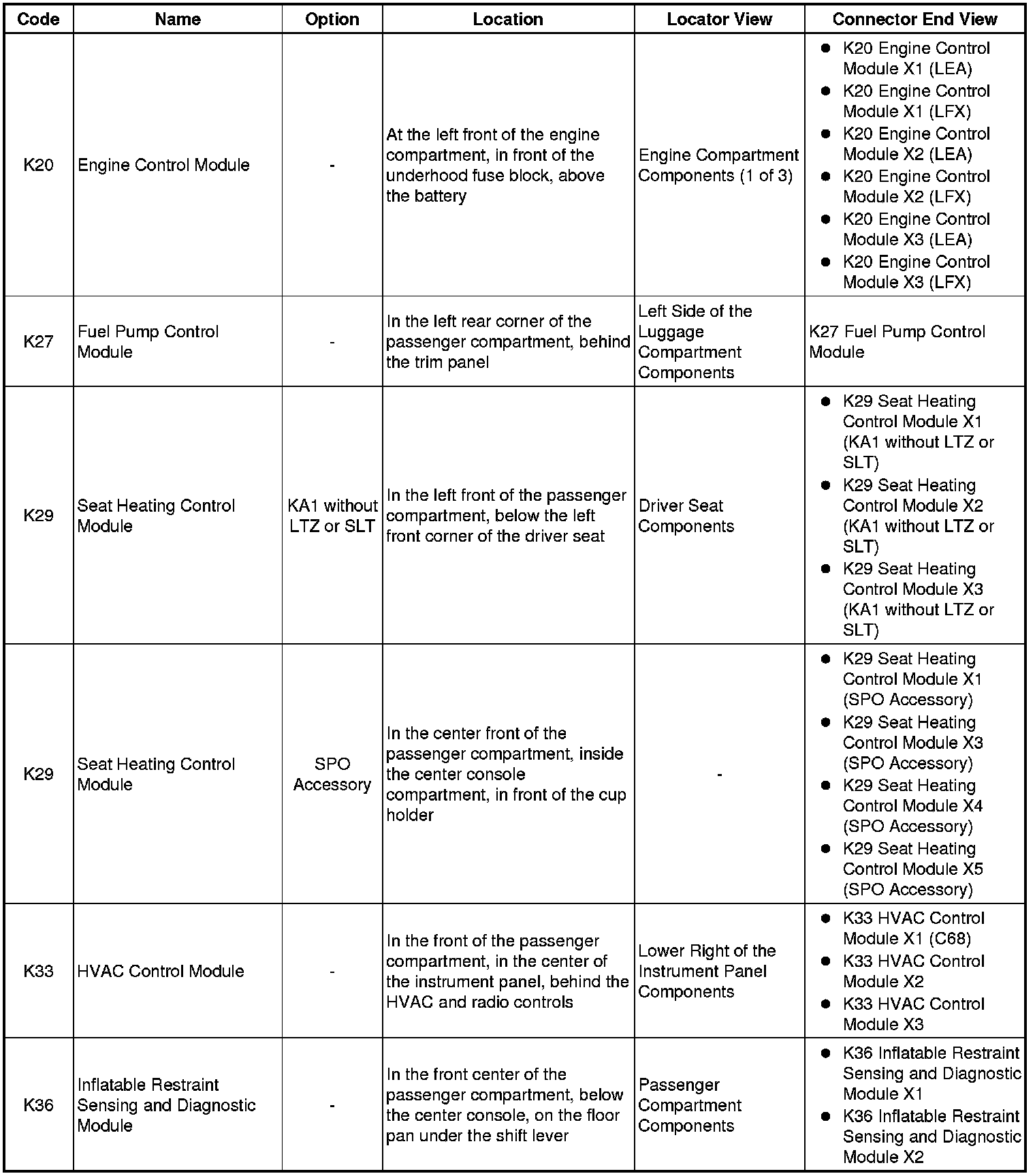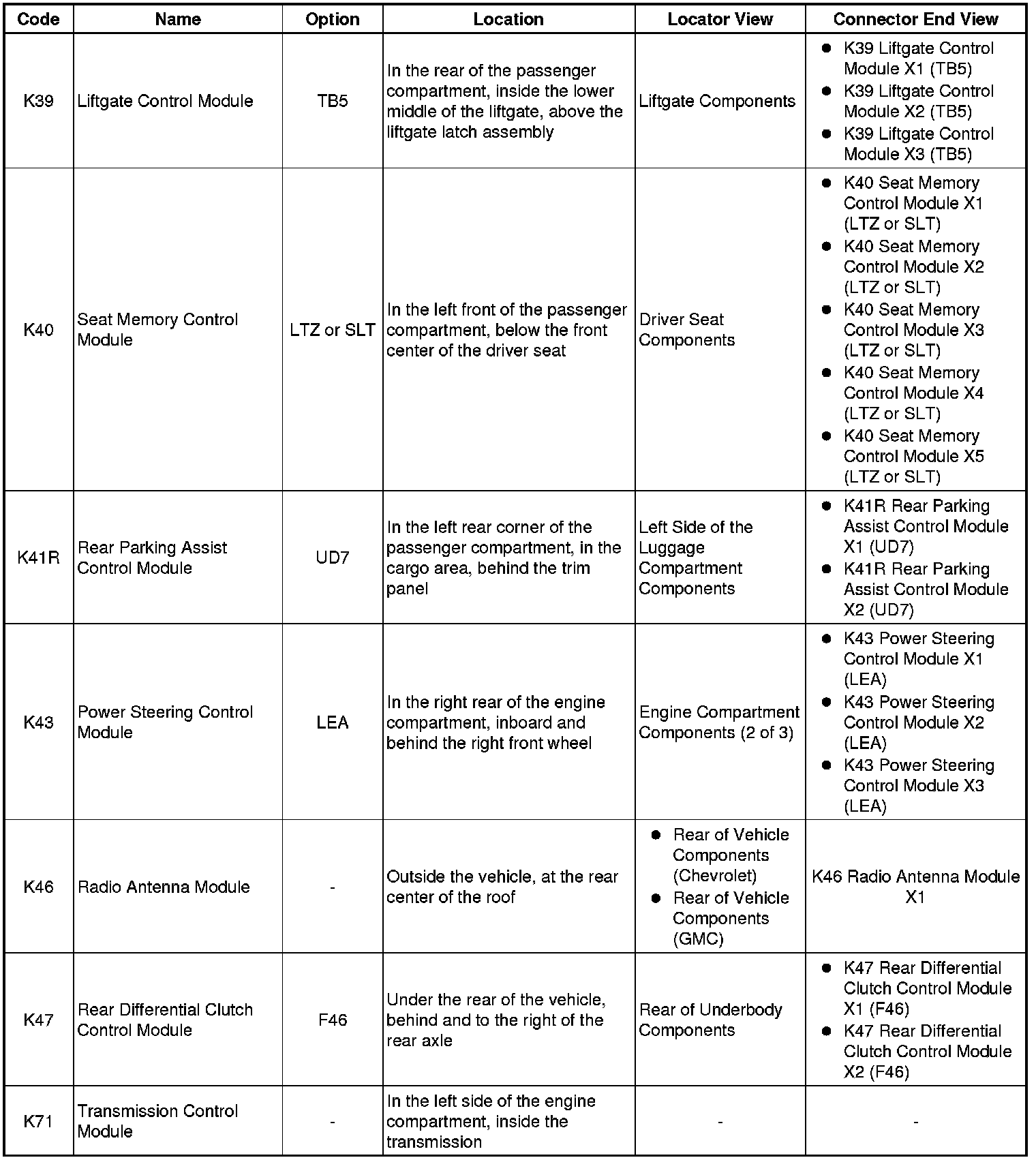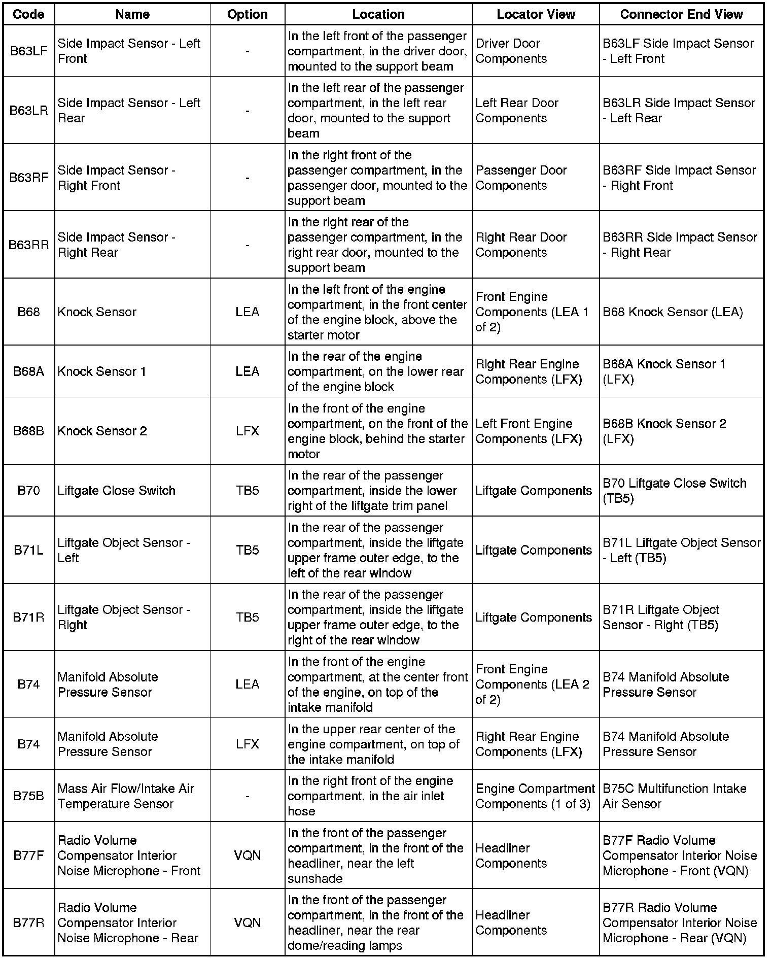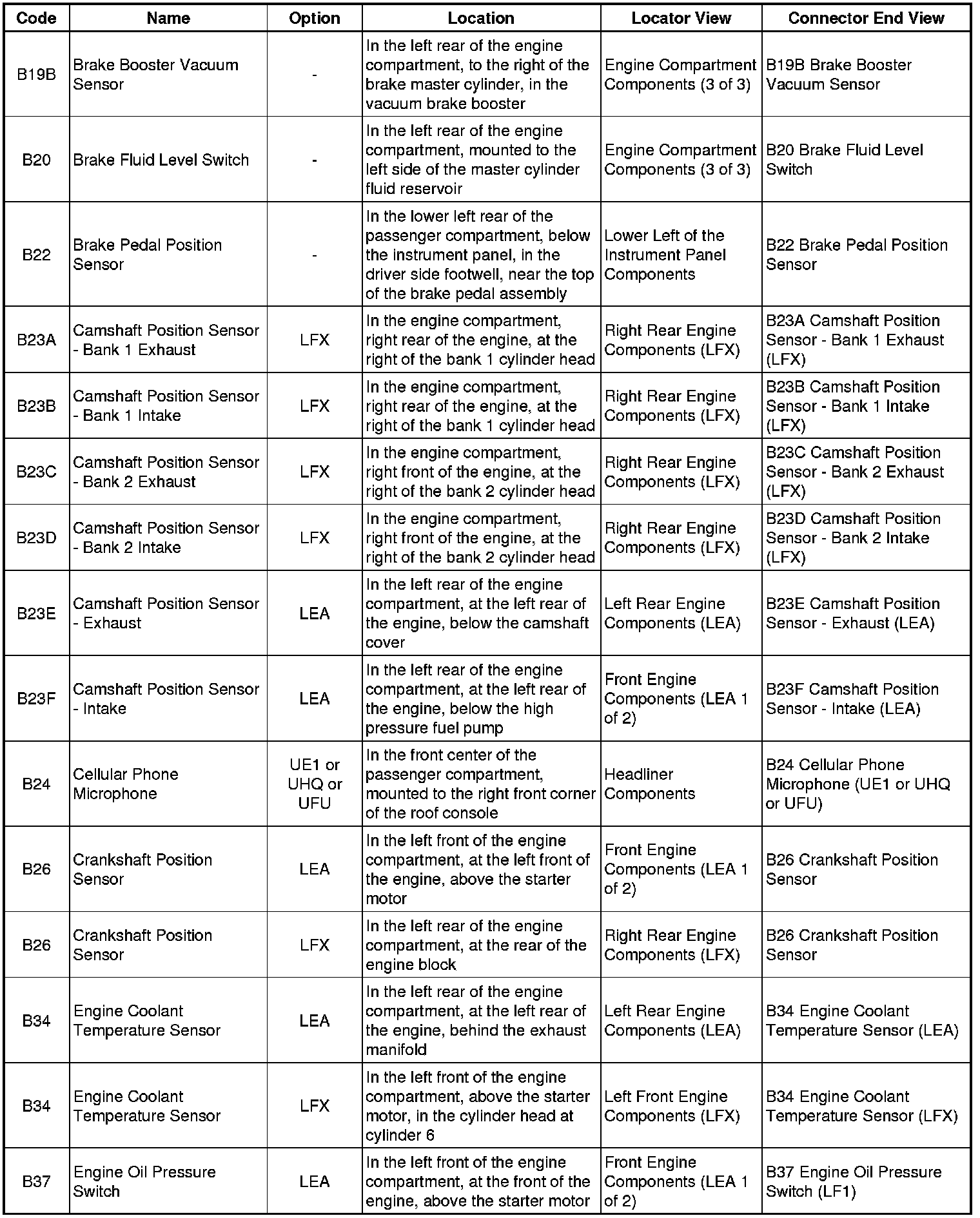 Master Electrical Component List