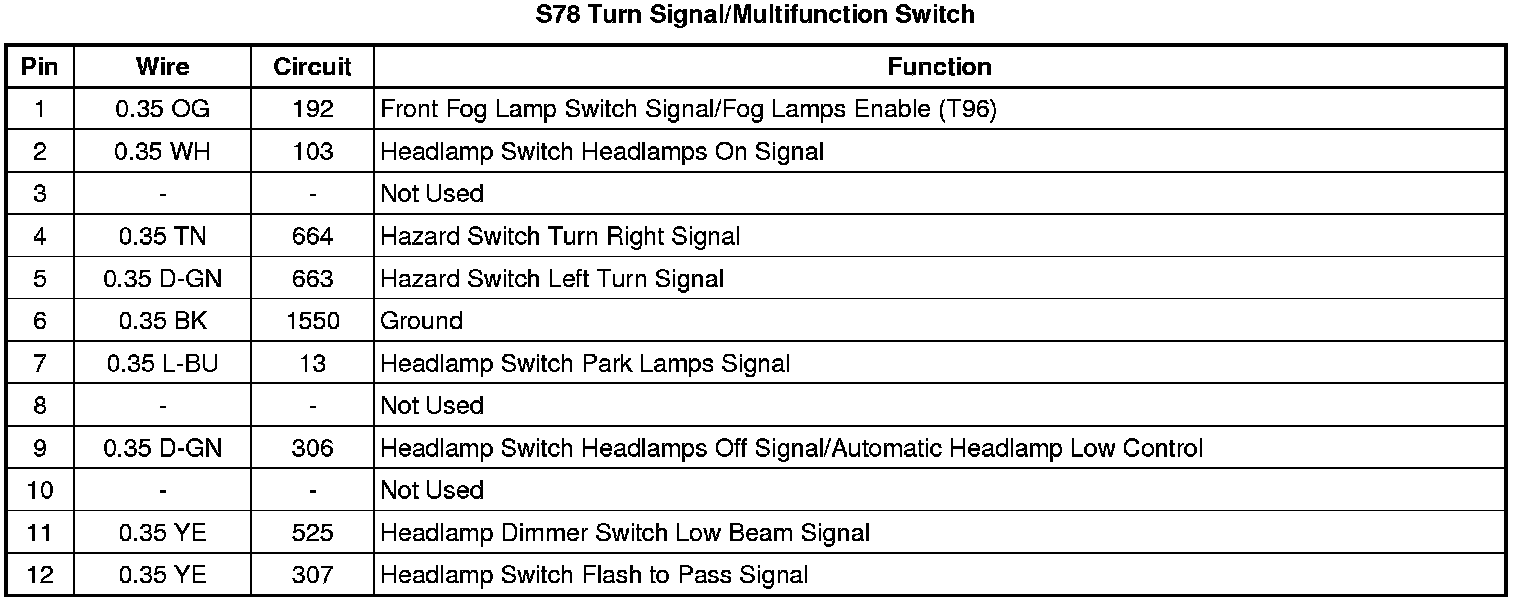 S78 Turn Signal/Multifunction Switch