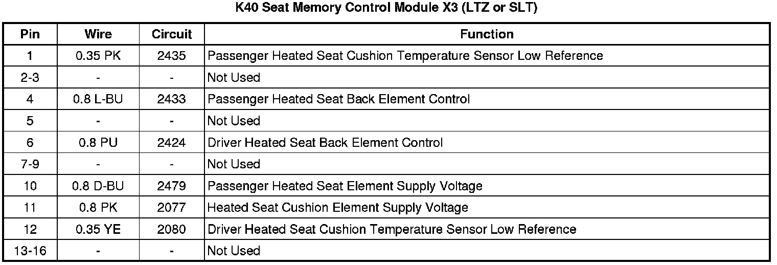 K40 Seat Memory Control Module X3 (LTZ or SLT)