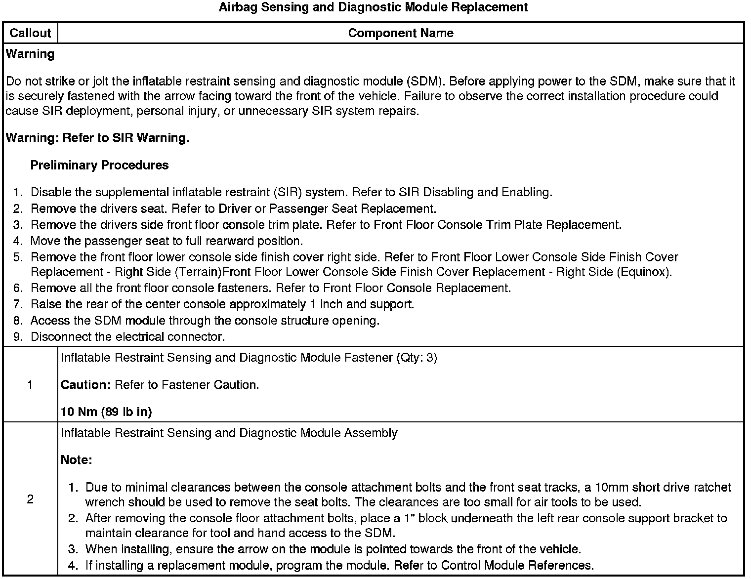Airbag Sensing and Diagnostic Module Replacement