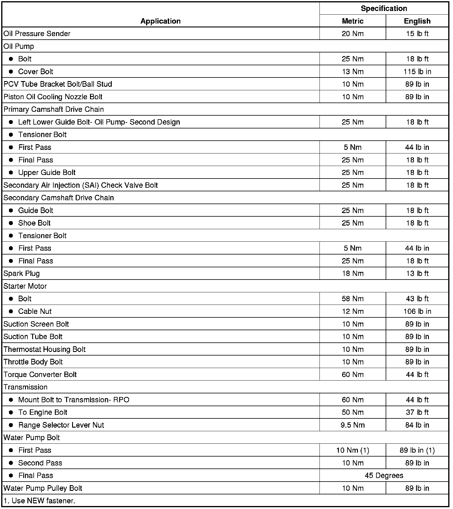 Fastener Tightening Specifications