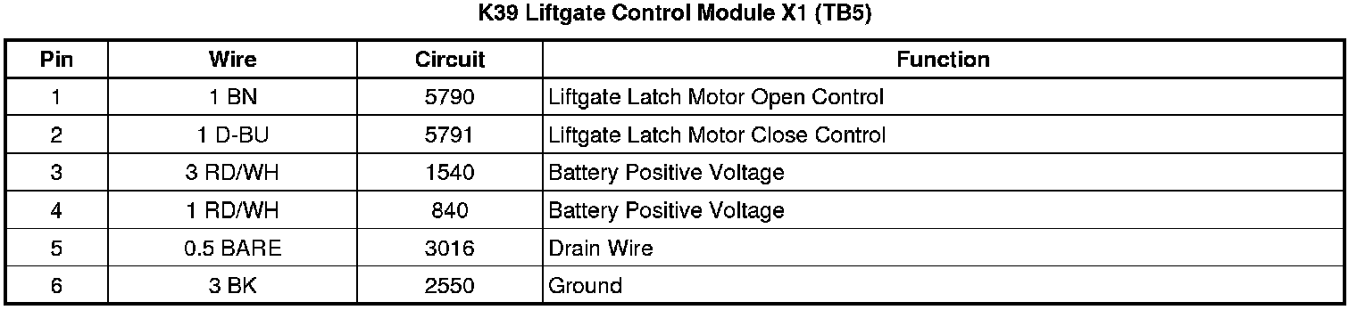 K39 Liftgate Control Module X1 (TB5)