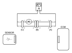 - Disconnect connectors (A), (C) and measure resistance between connector (A) and (C) as shown in [Fig 2].