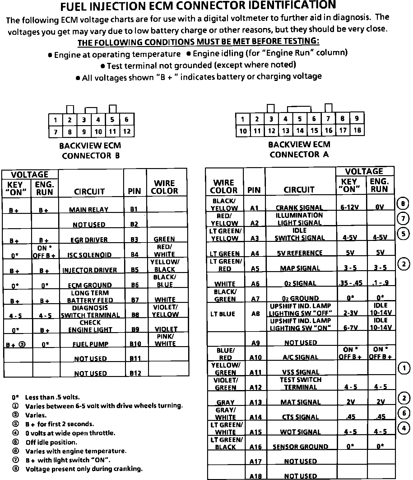 ECM Terminal End View Conventional Ignition System (M/T Only):
