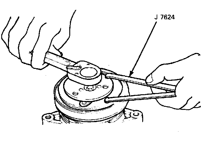 1. Using holder (J 7624) to prevent drive plate rotation, remove the bolt.