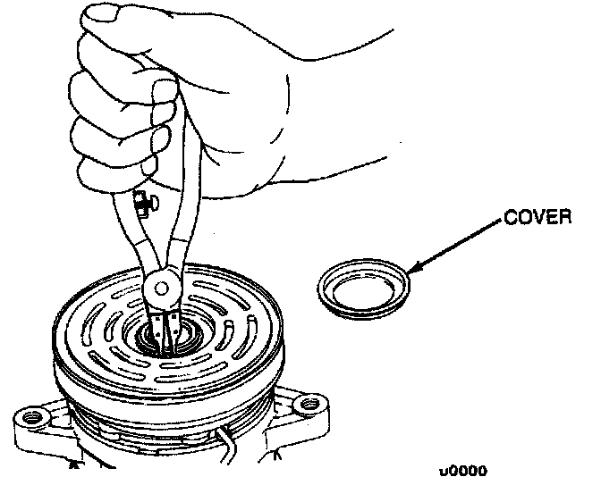 3. Remove the snap ring with external snap ring pliers and then remove the cover.