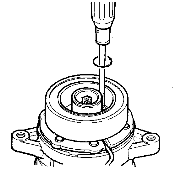 4. Remove the pulley assembly using pulley puller pilot (J 33943-A) and pulley puller (J 8433).