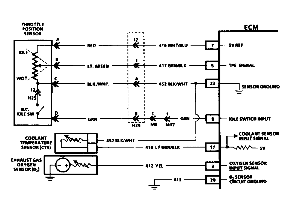 5. If voltage is less than 2 volts, in step 4). Check open wire or grounded wire to ECM terminal No. 5 or 7, if okay check TPS assembly.
