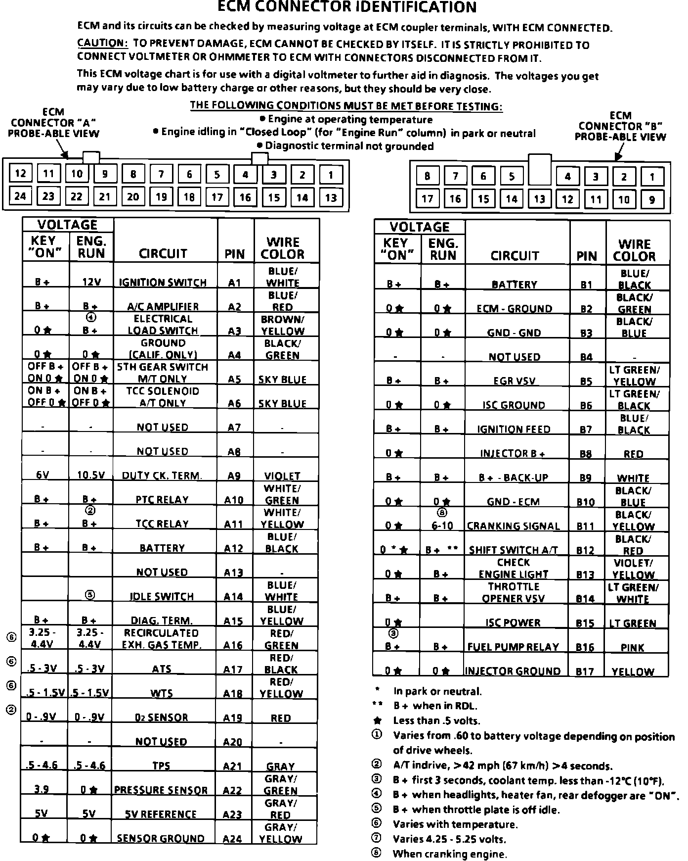 ECM Connector Pin Out: