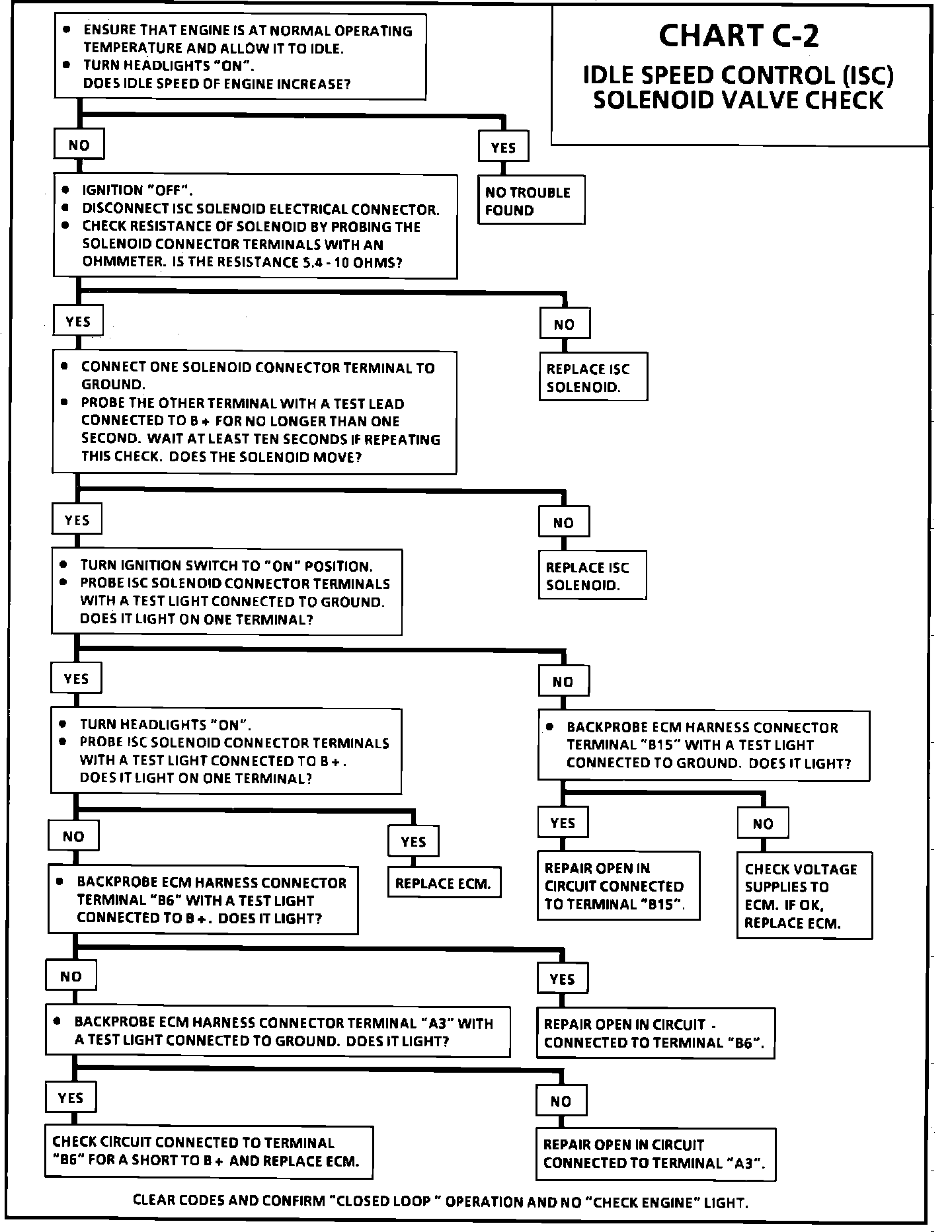 The ECM controls a solenoid to regulate an opening at the throttle body. The amount of the opening determines the idle speed. The ISC is regulated according to engine load. A stalling condition or rough idle could be caused by the ISC valve not functioning properly.