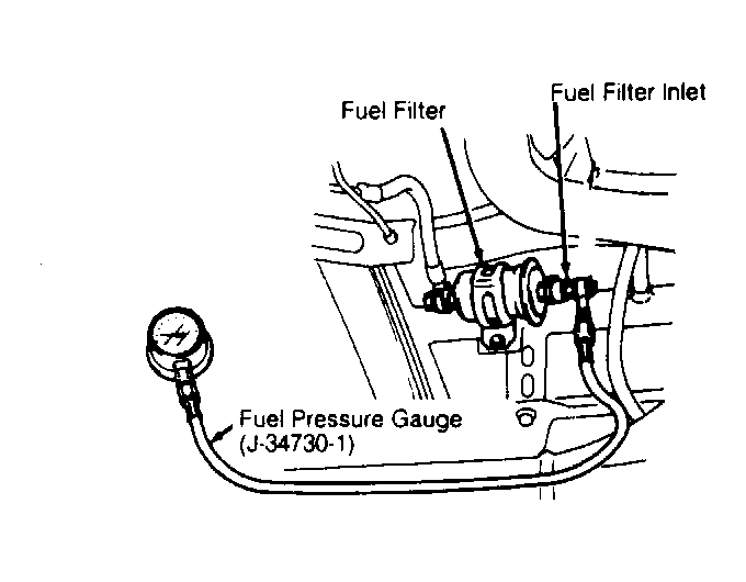 - With engine off, relieve fuel system pressure. See FUEL PRESSURE RELEASE in this article. Attach Fuel Pressure Gauge Set (J-34730-1) at fuel filter inlet in front of fuel tank. See Fig 1