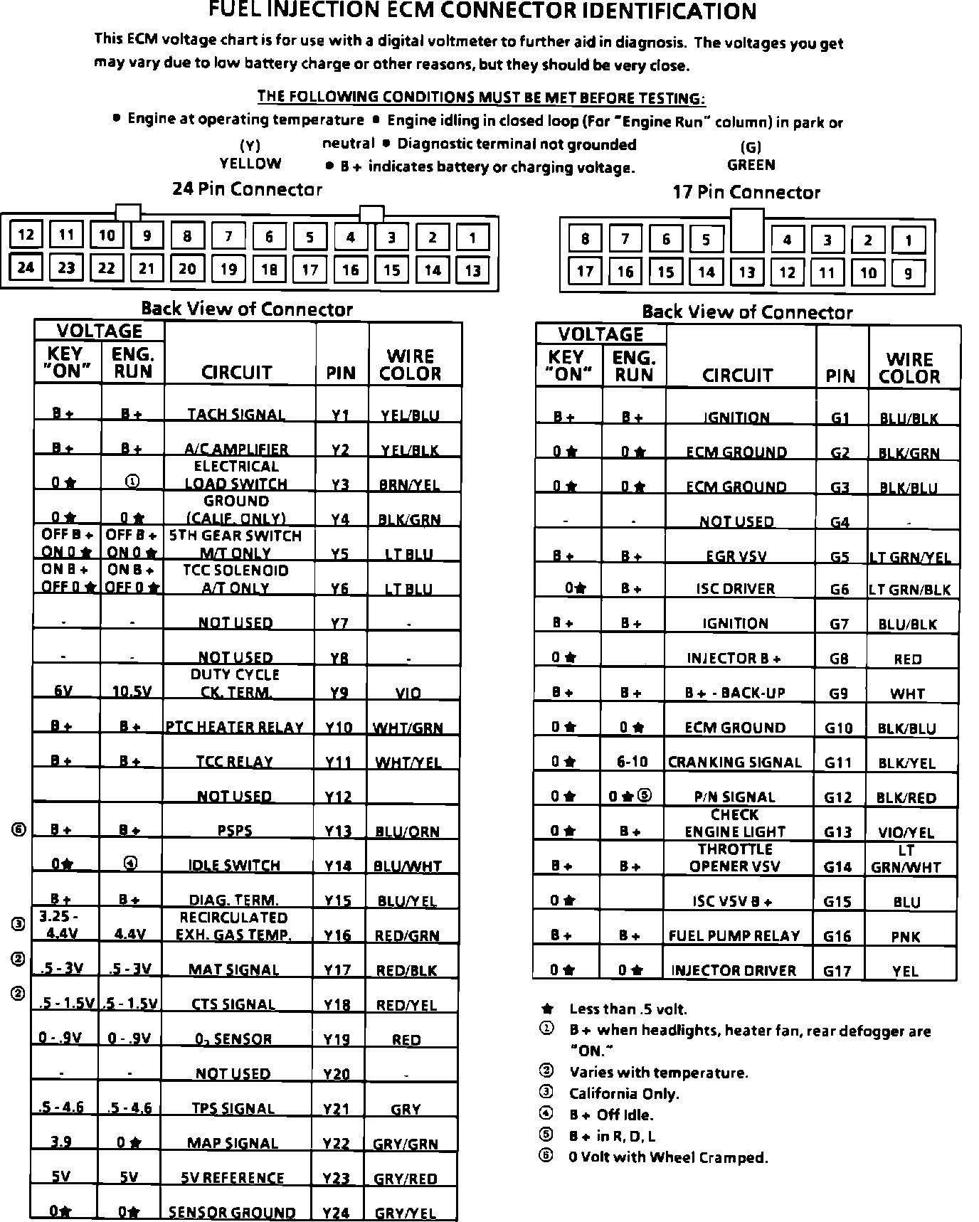 ECM Connector Pin Out: