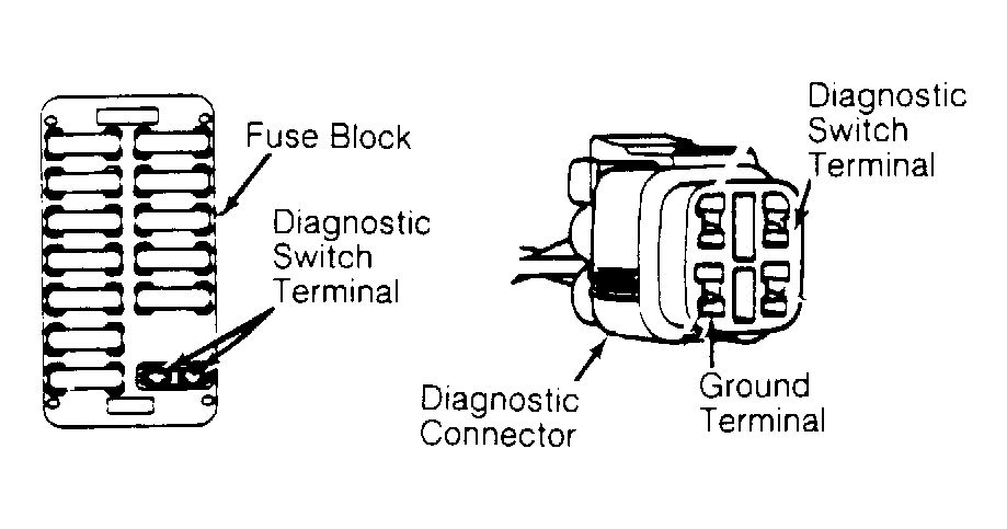 - Fault code(s) can be retrieved through either of the 2 diagnostic switch terminals. See Fig 1. One is located in the diagnostic connector in engine compartment, and the other one is located in the fuse block in the passenger compartment.