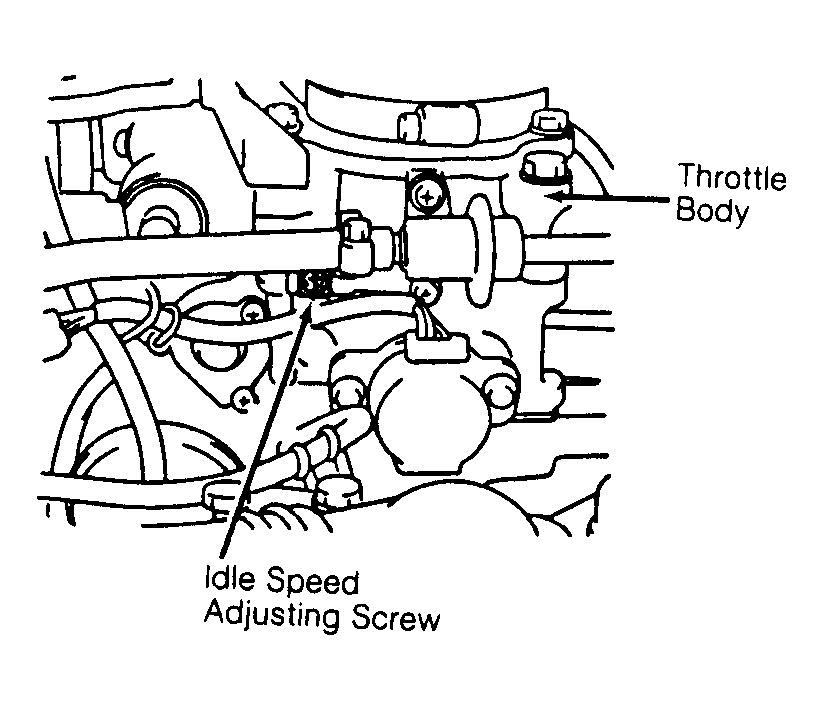 4. Note idle speed. Idle speed should be within specification. See IDLE SPEED SPECIFICATIONS table. If idle speed requires adjustment, remove plug and rotate idle speed adjusting screw on throttle body to obtain correct idle speed. See Fig 1 .