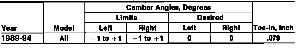 Rear Wheel Alignment Specifications: