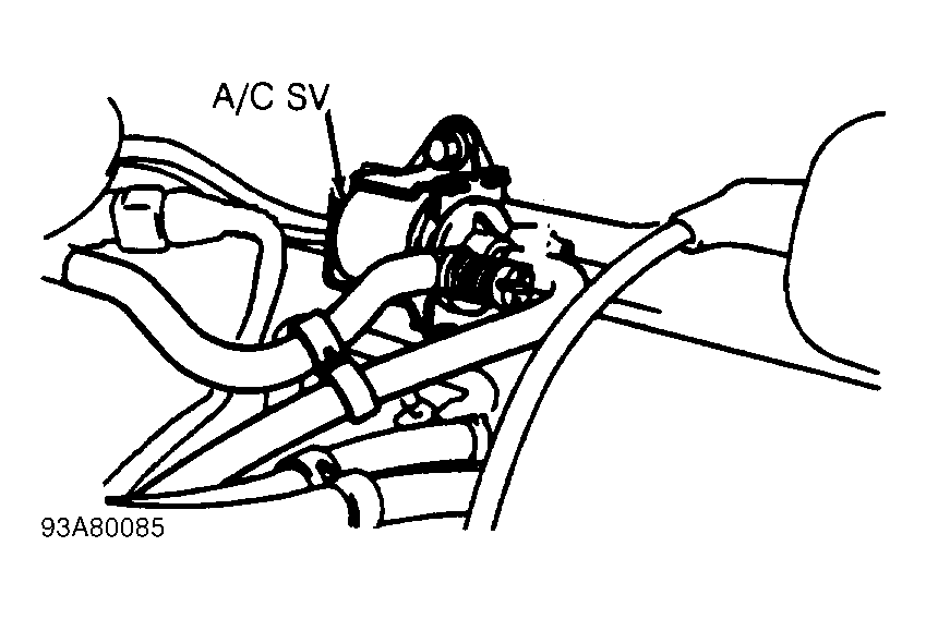 - When A/C is operated, ECM operates A/C Solenoid Vacuum (SV) valve to supply by-pass air to increase engine idle speed. A/C SV valve is mounted on firewall, right of ignition coil. See Fig 1