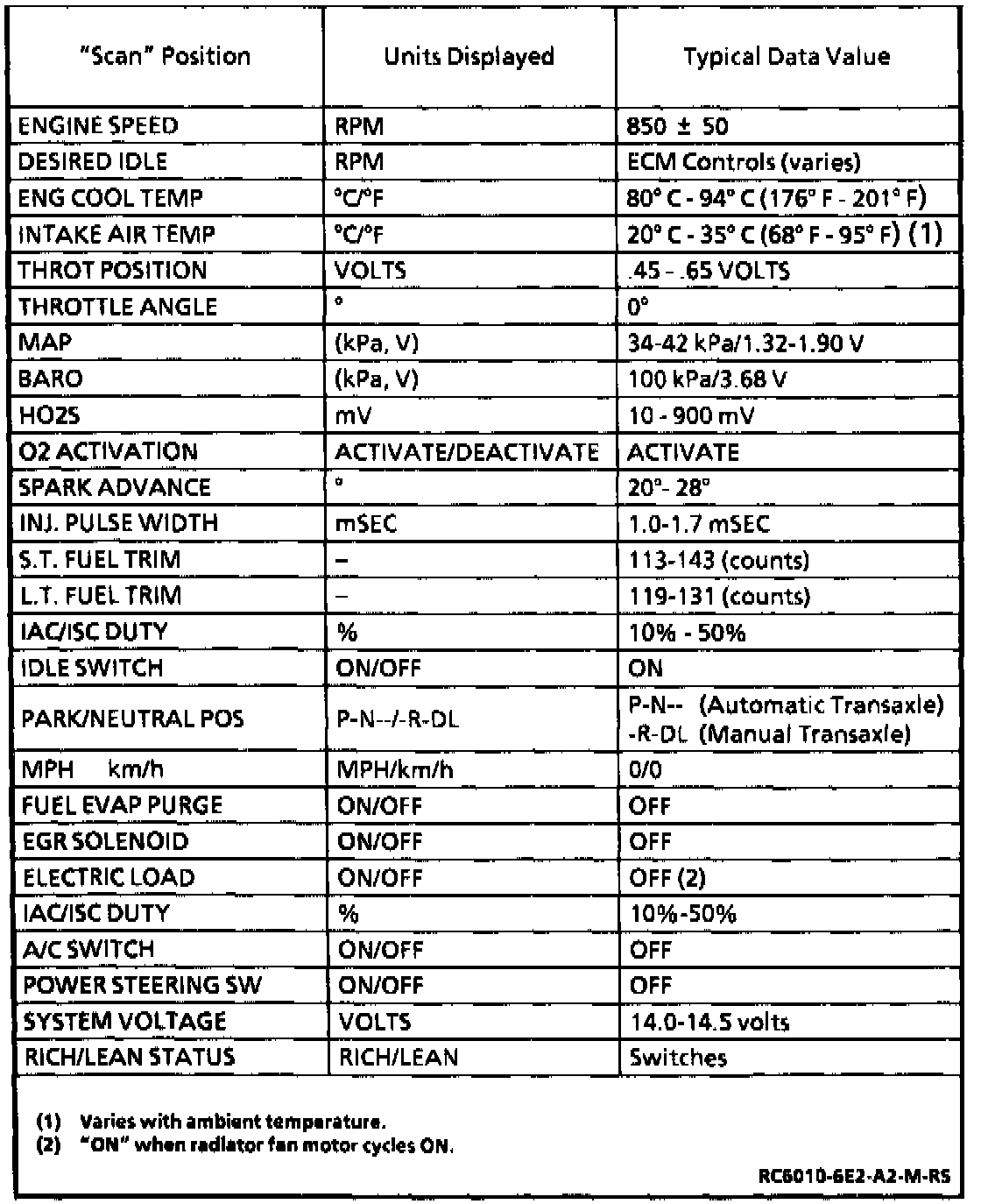 Tech 1 Data Values: