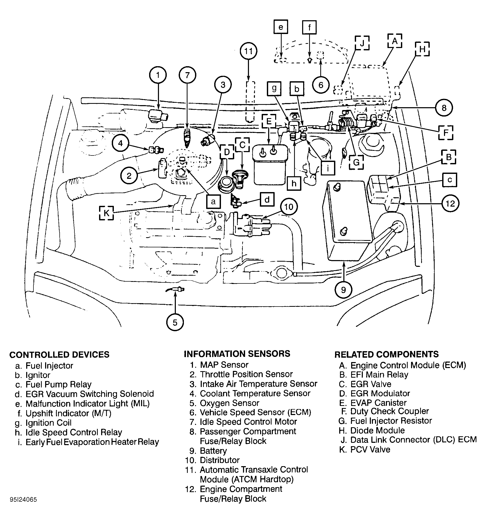 | Engine Compartment Fuse/Relay Block | On left side of engine compartment, behind battery. See Figure . |