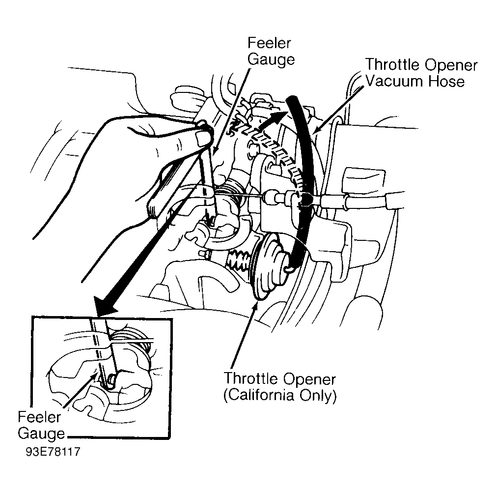 - To check proper TP sensor operation, using ohmmeter, check resistance or continuity with selected feeler gauge thickness between throttle lever and stop screw. See Figure and Figure