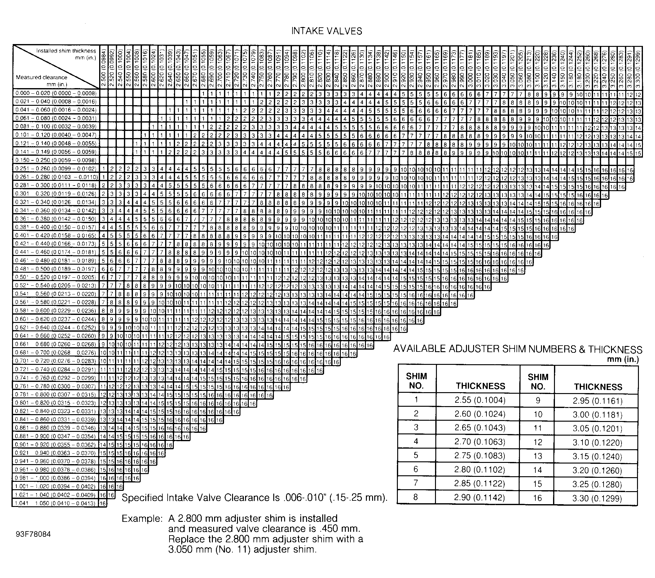 VALVE CLEARANCE SPECIFICATIONS