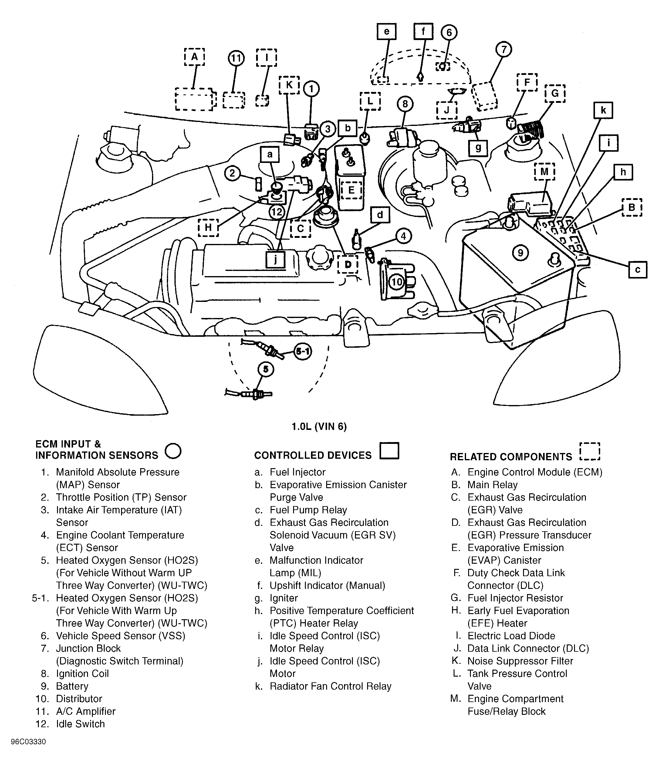 | Engine Control Module (ECM) (1.0L VIN 6) | Behind right side of dash. See Figure. |