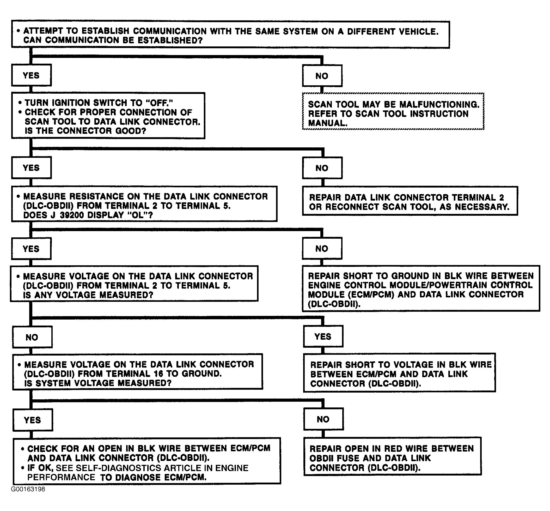Fig 1: Test B: Scan Tool Will Not Communicate With Class 2 Data Line