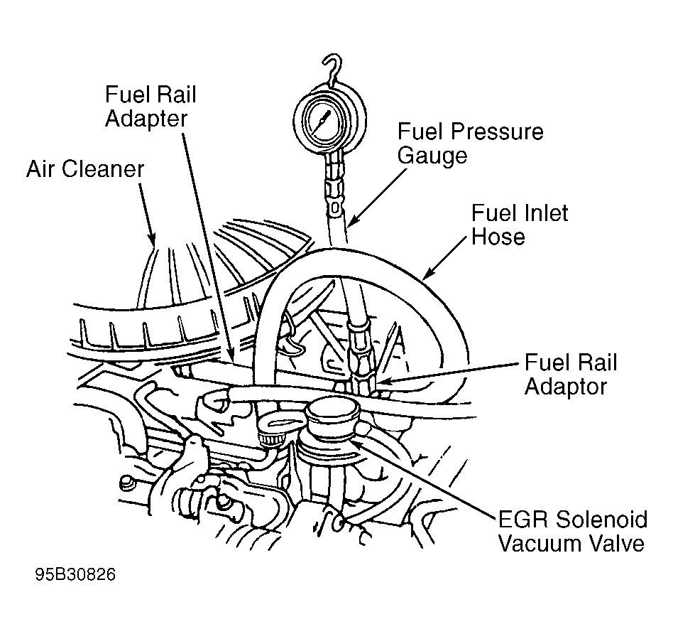 - Reconnect negative battery cable. Reconnect PCV valve hose and IAT sensor connector. Install air cleaner assembly. Start engine and idle at normal operating temperature. Check fuel pressure. See FUEL PUMP PERFORMANCE table. If fuel pressure is not as specified, see CIRCUIT TEST DIRECTORY table under CIRCUIT TESTS. If fuel pressure is as specified, release fuel pressure. Remove fuel pressure gauge and reinstall components removed. Start engine and check for leaks.