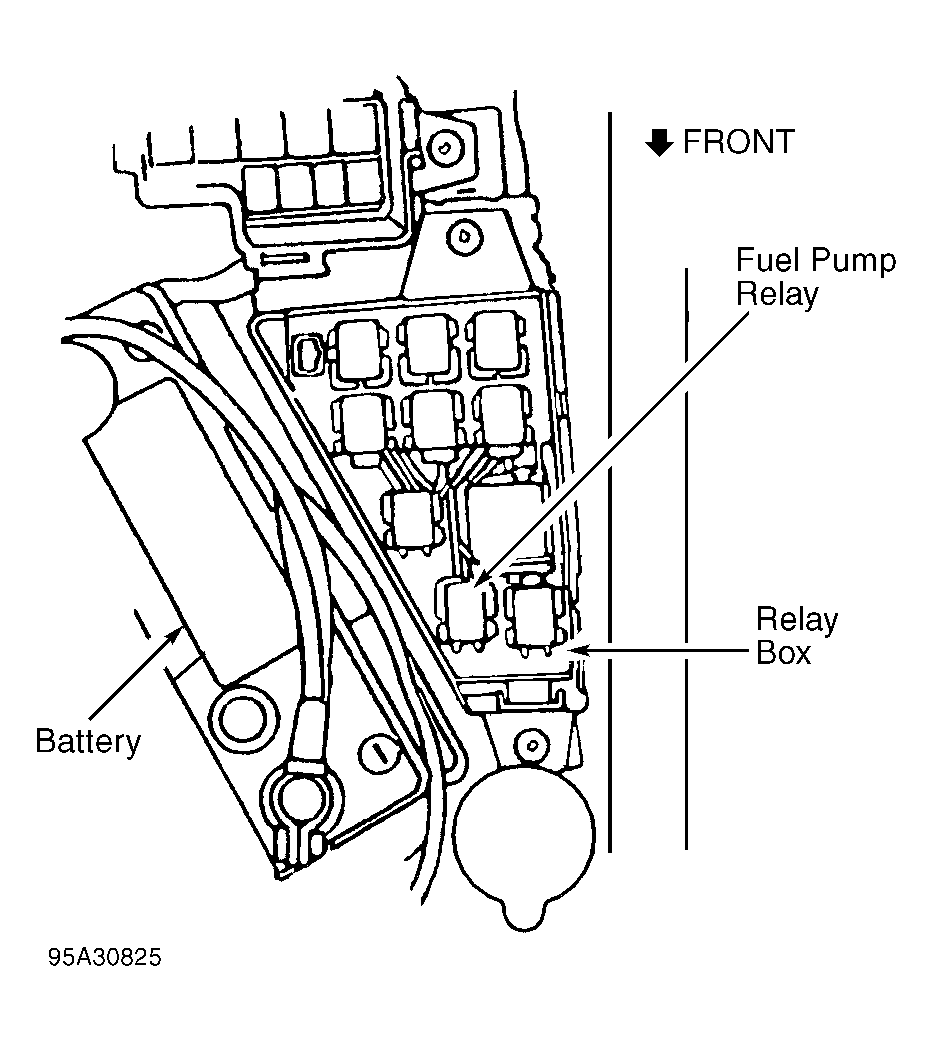 Loosen fuel filler cap to release fuel tank pressure. Remove cover from relay/fuse box, located in left front corner of engine compartment, behind battery. See Fig 1. Remove fuel pump relay from relay/fuse box. Start and run engine until it stalls. Crank engine for about 3 more seconds to ensure residual fuel line pressure is released. Turn ignition off. Disconnect negative battery cable. Install fuel pump relay, cover, and tighten fuel filler cap.
