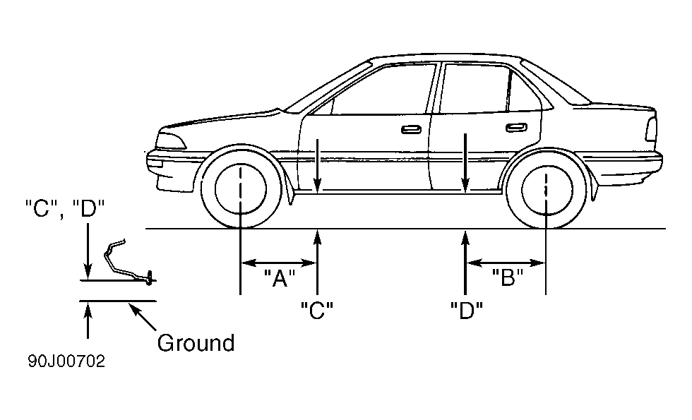 Visually inspect vehicle for signs of abnormal height from front to rear or side to side. Check passenger and luggage compartments for extra heavy items, and remove items if present. If riding height is not within specification, check, repair or replace suspension components. True riding height should be an average of several measurements.