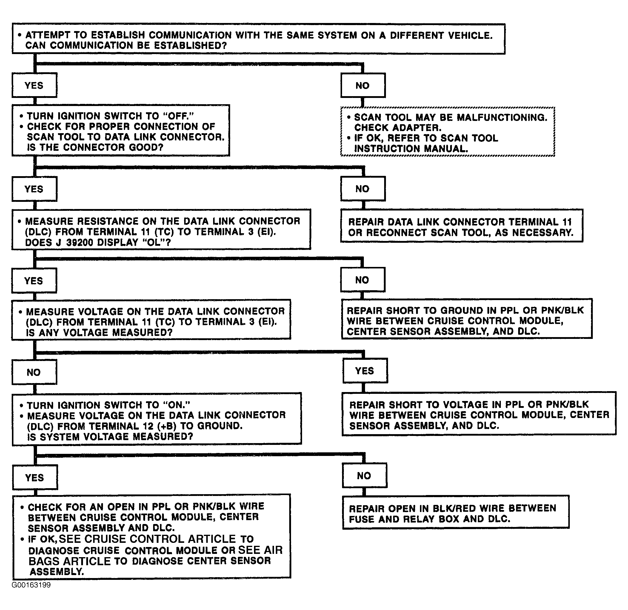 Test C: Scan Tool Will Not Communicate With Center Sensor Assembly Or Cruise Control Module