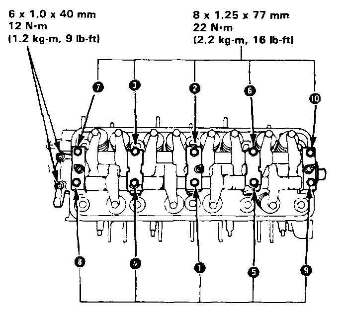 Rocker Assy. Torque/Sequence - Tighten Each Bolt 2 Turns At A Time In The Sequence Shown: