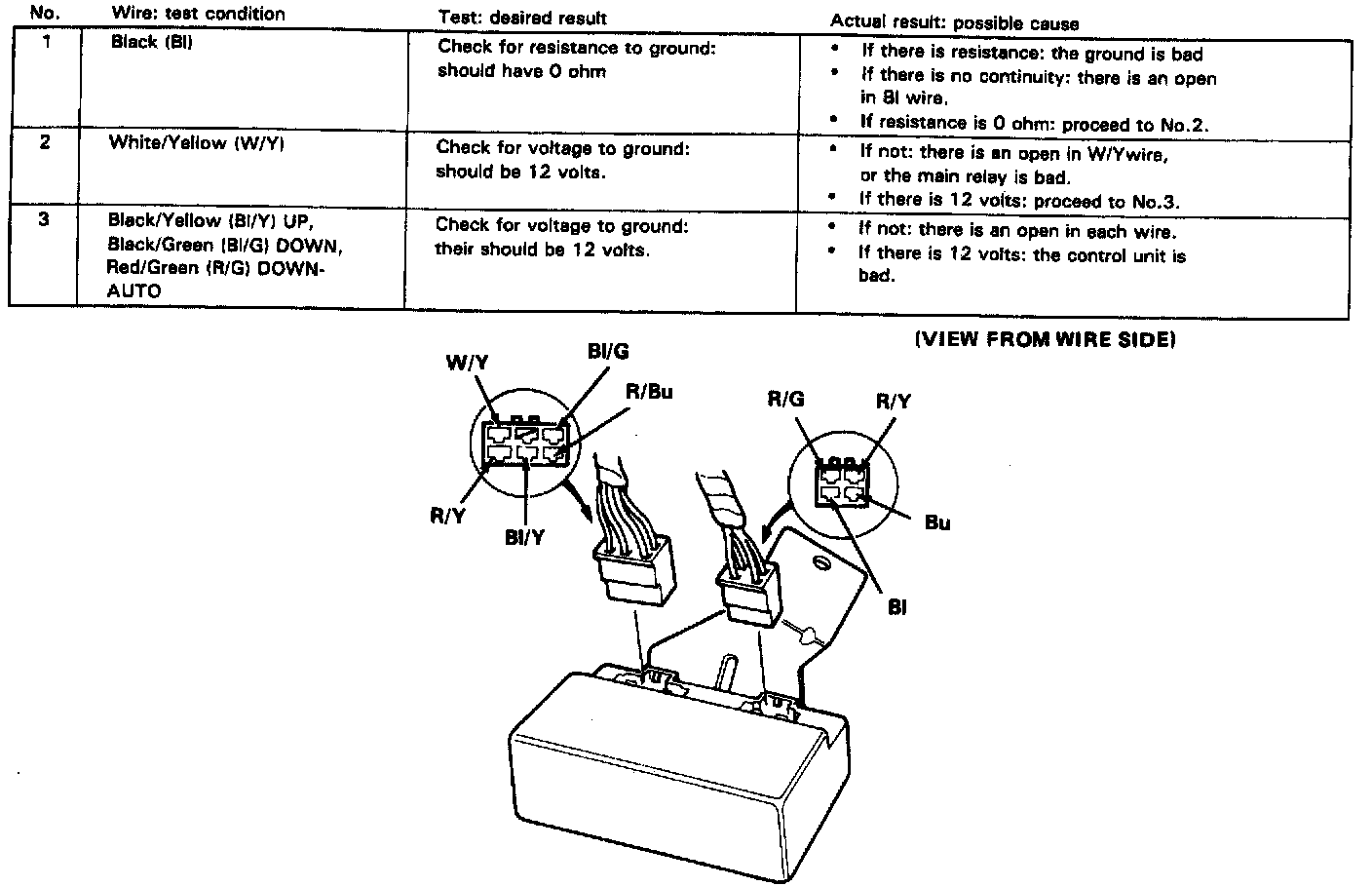 Output Test: The control unit couplers are reconnected and the control unit ground wire is disconnected with ignition switch ON.