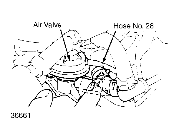 - If there is no vacuum present, disconnect vacuum hose No. 26 from air valve. Check for vacuum at hose No. 26 during deceleration above 3500 RPM.