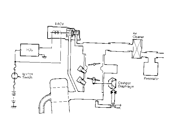 System supplies air for all engine needs. It consists of air cleaner, air intake pipe, throttle body, Electronic Air Control Valve (EACV), fast idle mechanism and intake manifold. On all models, a resonator control system in the air intake pipe provides additional silencing as air is drawn into system.