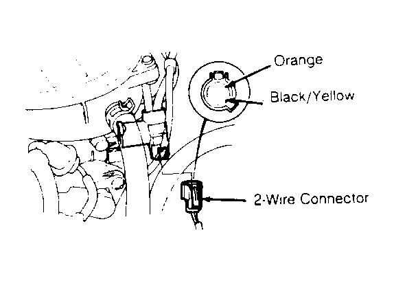 - Measure voltage between ground and Black/Yellow wire terminal. If voltage is now present, go to next step. If voltage is not present, repair open in Black/Yellow wire between 2-wire connector and No. 14 fuse.