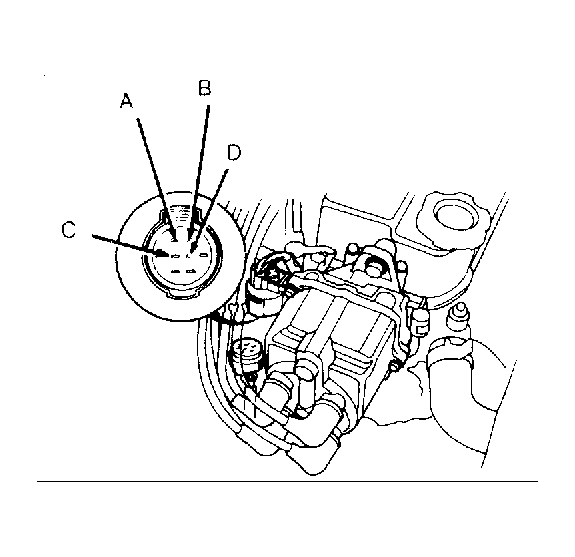 2. If light is on, turn ignition off. Disconnect sensor connector at distributor. Measure resistance between terminals "B" and "C" (standard and DOHC) or terminals "A" and "B" (HL and Si). See Figure , Figure and Figure . If resistance is not 350-550 ohms, replace distributor assembly. If resistance value is within specification, individually check for continuity between ground and the same respective terminals. If continuity exists, sensor is shorted to ground. Replace distributor assembly.
