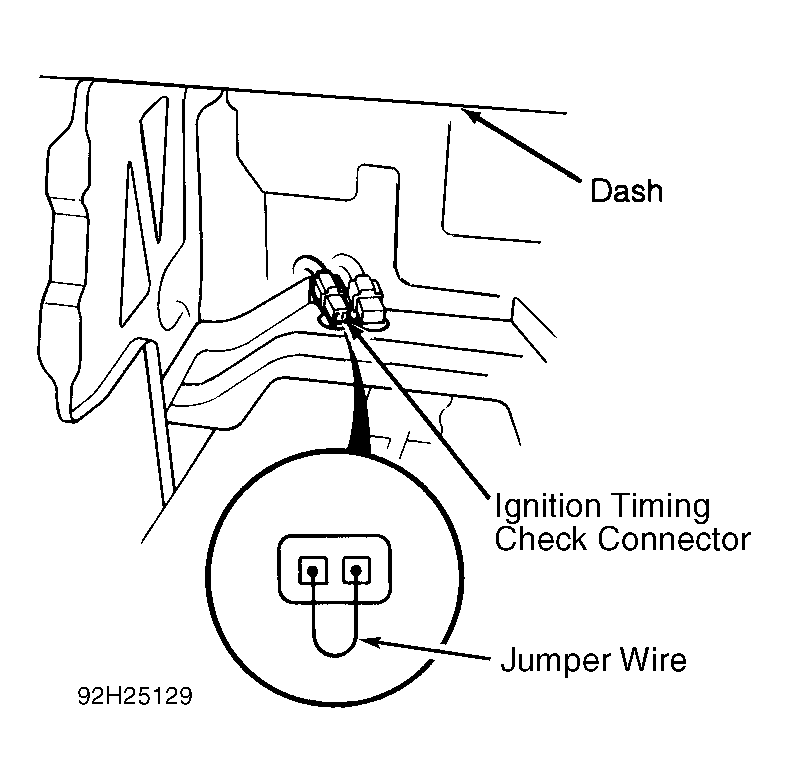 - Ignition timing check connector is located under center of dash. See Fig 1 . Connect jumper wire between Blue/White and Brown/White wire terminals.