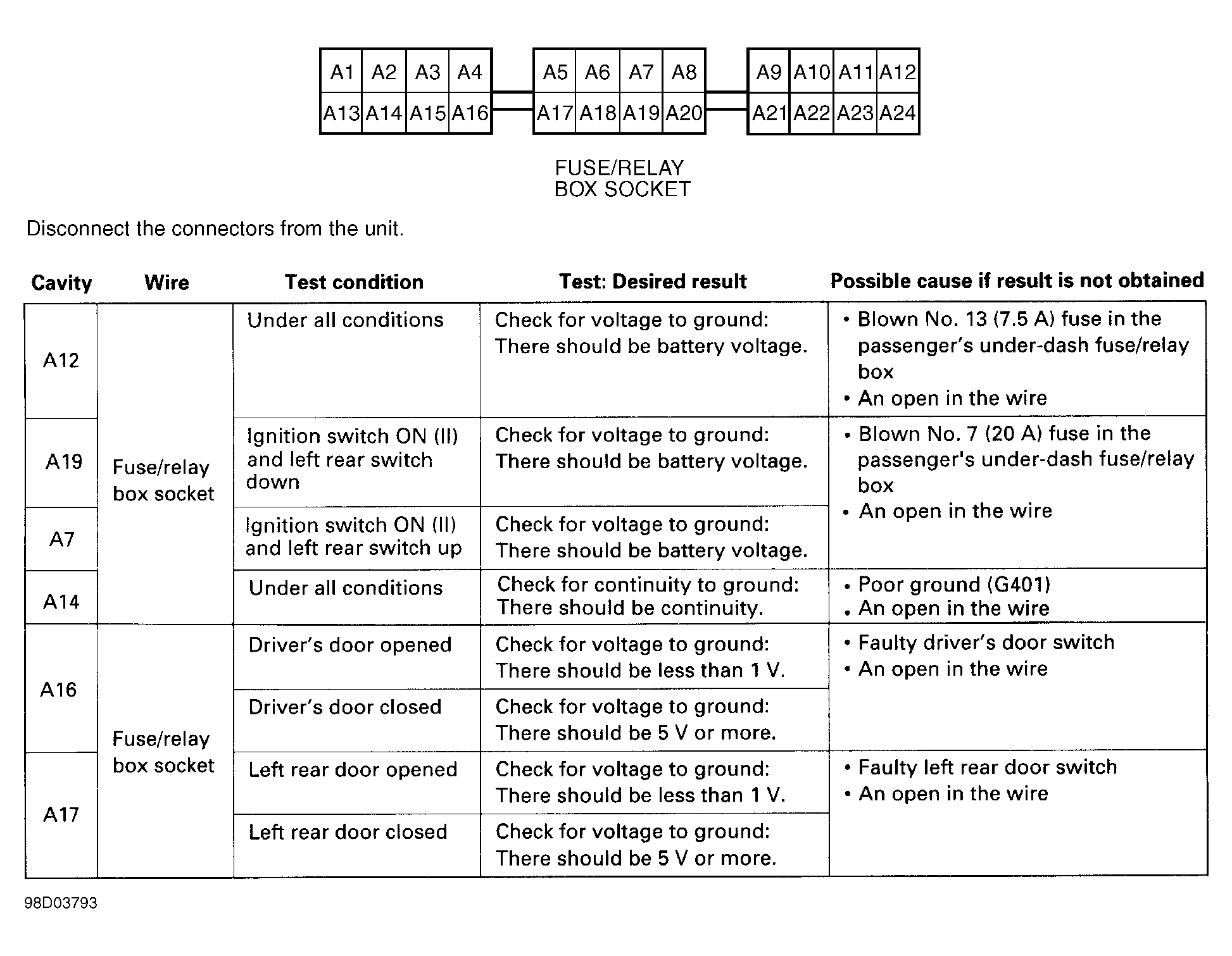 Home >> Honda >> 1998 >> Prelude Base, Automatic >> Repair and Diagnosis >> Body & Frame >> Power Windows >> System Tests >> Multiplex Control Unit Input Tests >> Driver's Control Unit Input Test