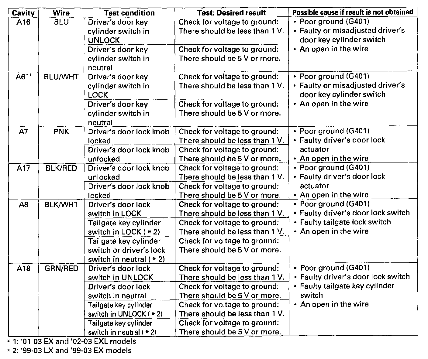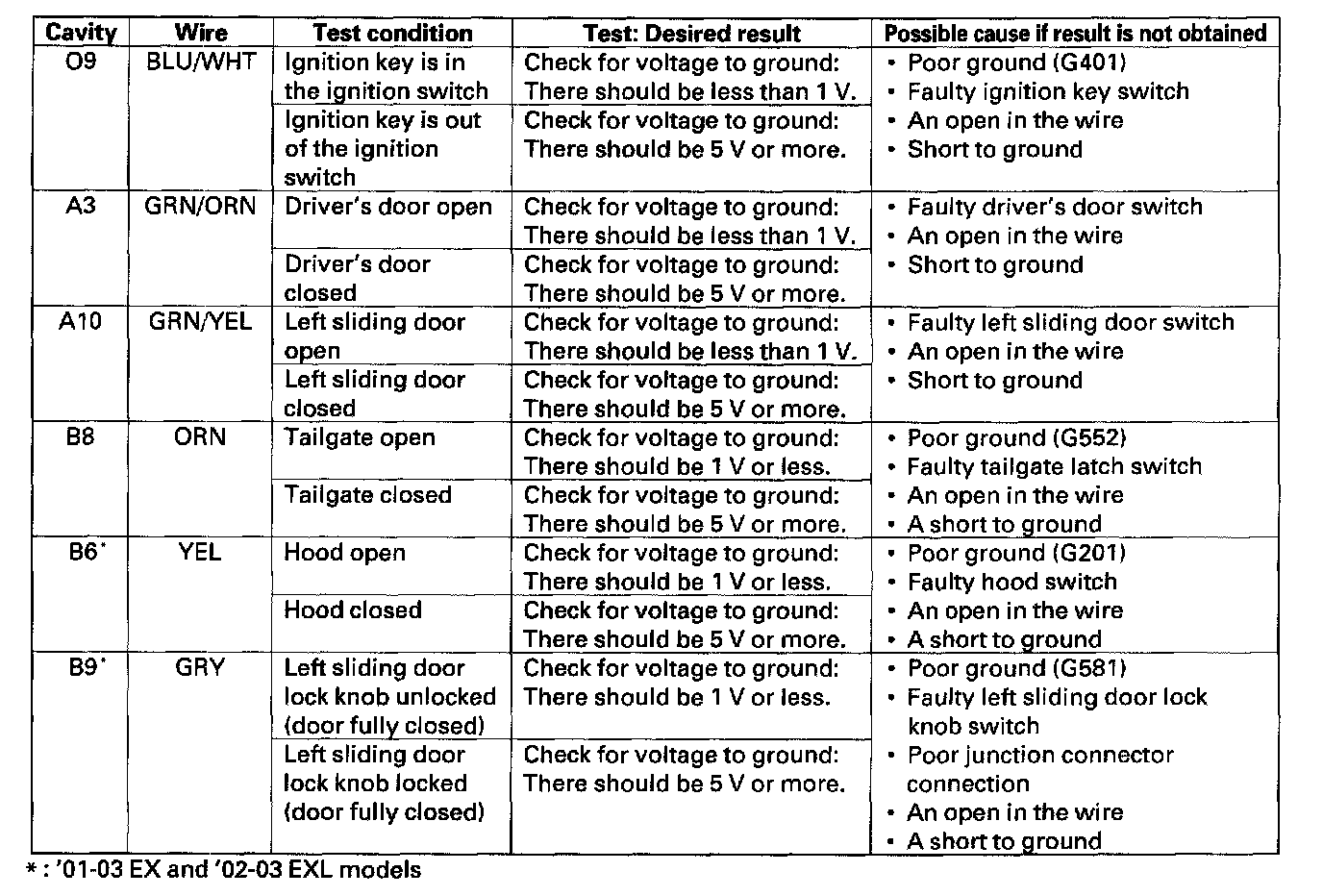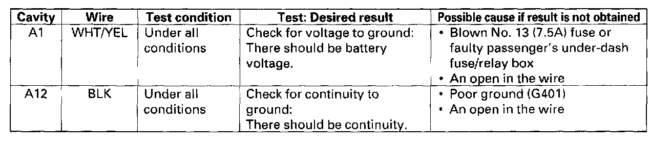 Home >> Honda >> 2000 >> Odyssey EX V6-3.5L >> Repair and Diagnosis >> Body and Frame >> Locks >> Keyless Entry >> Keyless Entry Module >> Testing and Inspection