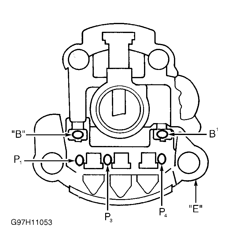 . To test all 9 diodes, perform continuity checks between terminal "B" and each "P" terminal, terminal B1